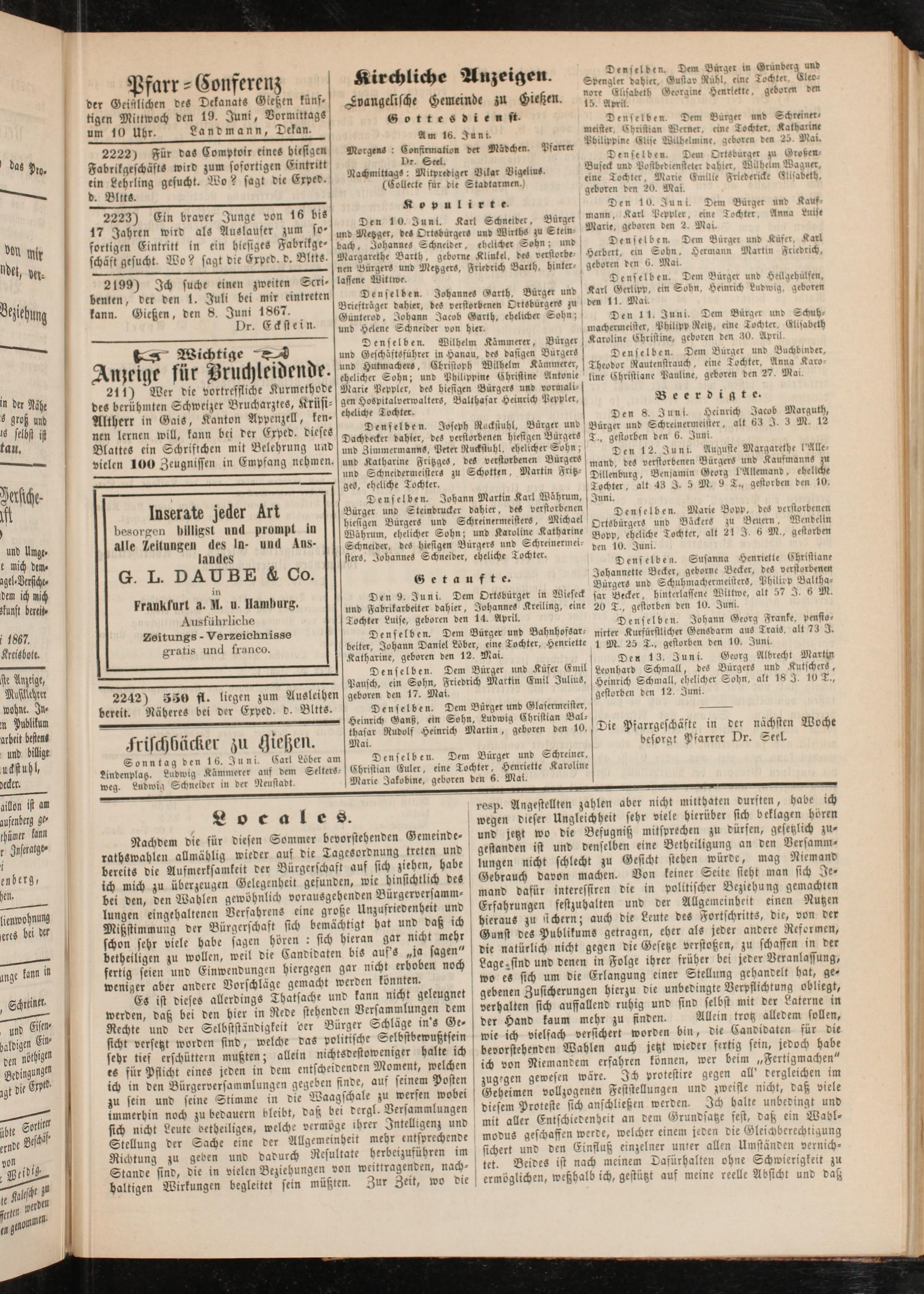Anzeigeblatt für die Provinzialhauptstadt Gießen. 1840-1867