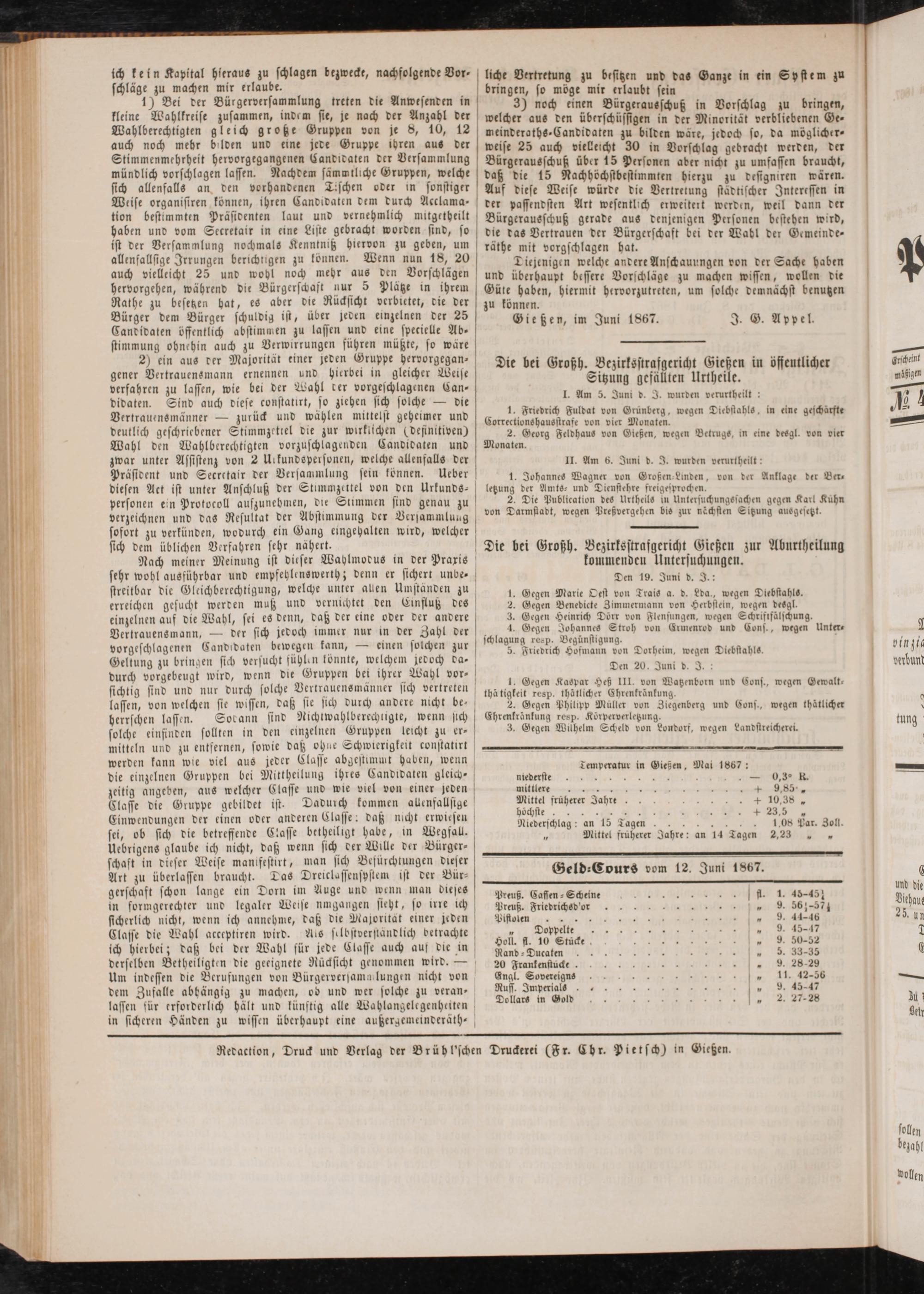 Anzeigeblatt für die Provinzialhauptstadt Gießen. 1840-1867