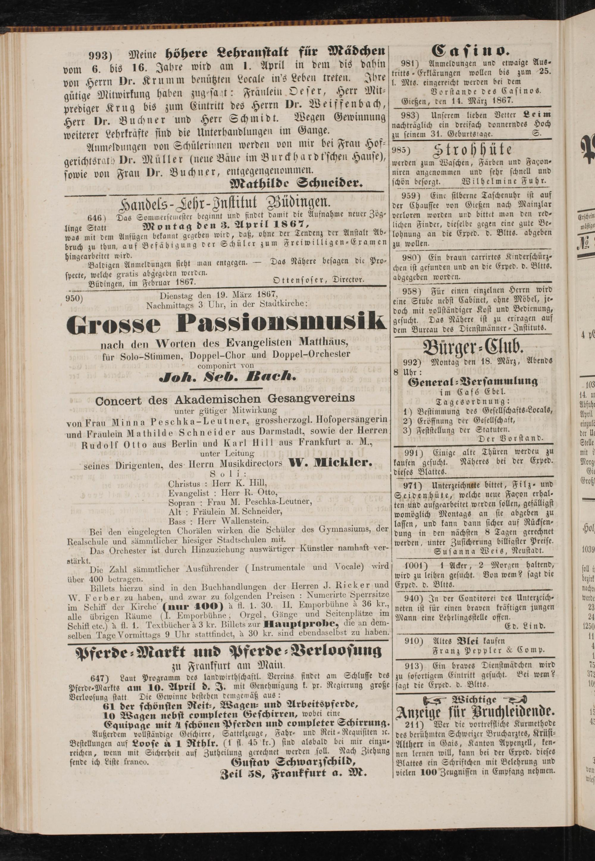 Anzeigeblatt für die Provinzialhauptstadt Gießen. 1840-1867