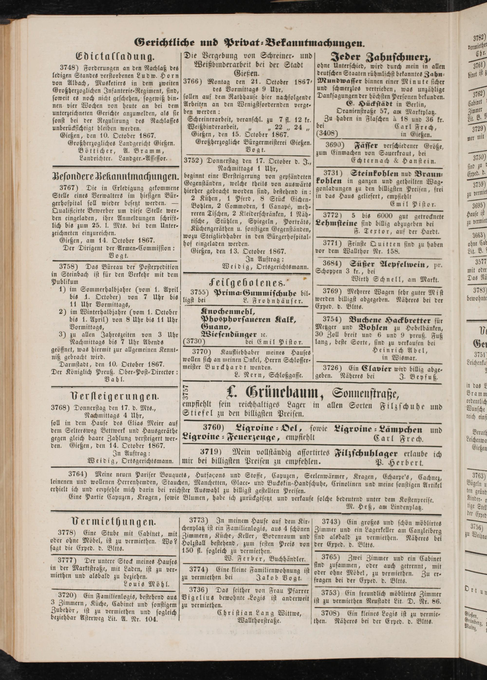 Anzeigeblatt für die Provinzialhauptstadt Gießen. 1840-1867
