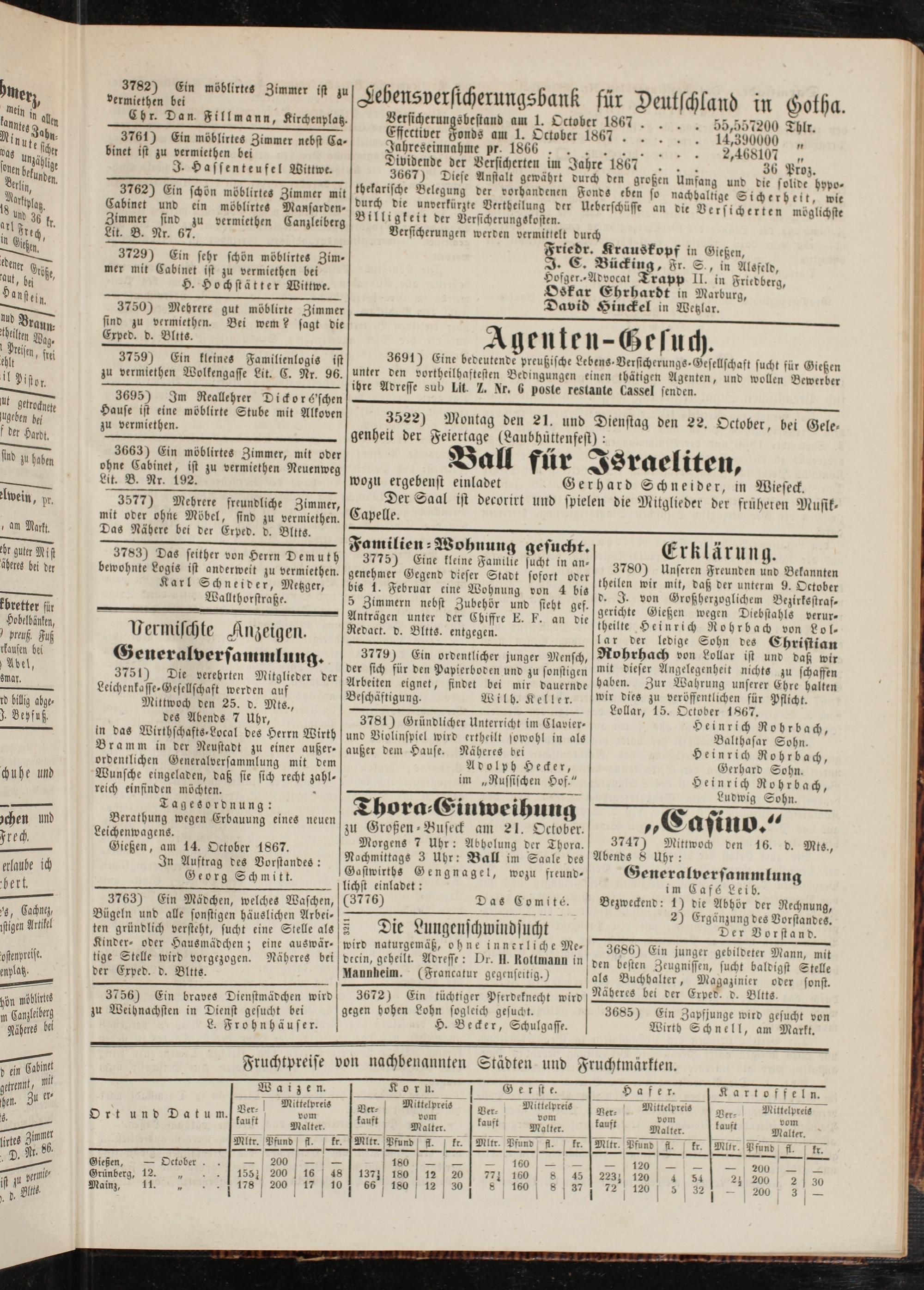 Anzeigeblatt für die Provinzialhauptstadt Gießen. 1840-1867