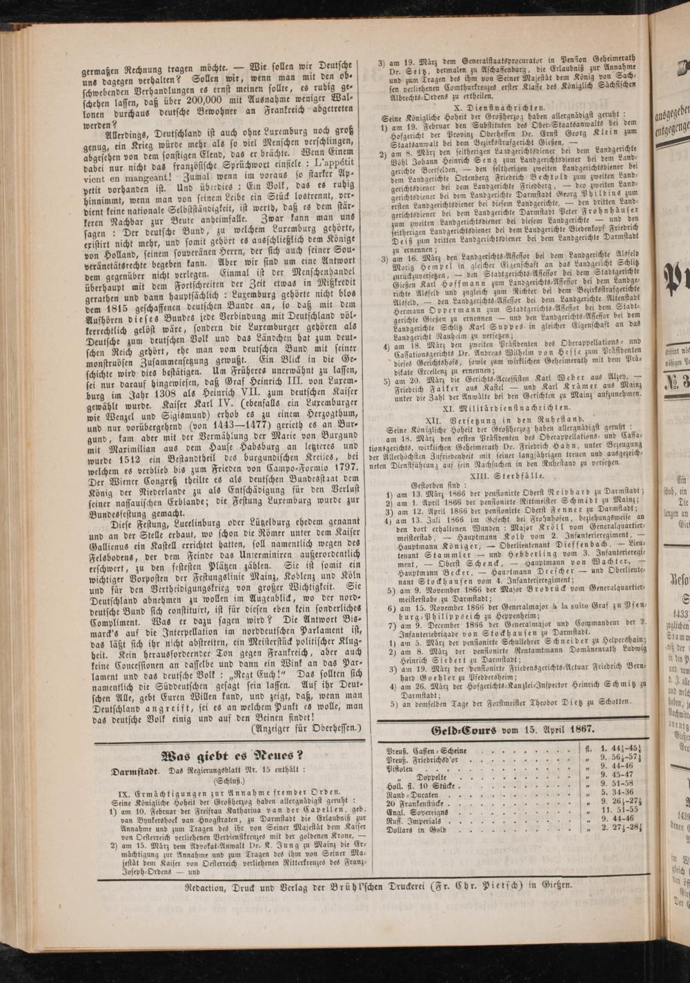 Anzeigeblatt für die Provinzialhauptstadt Gießen. 1840-1867