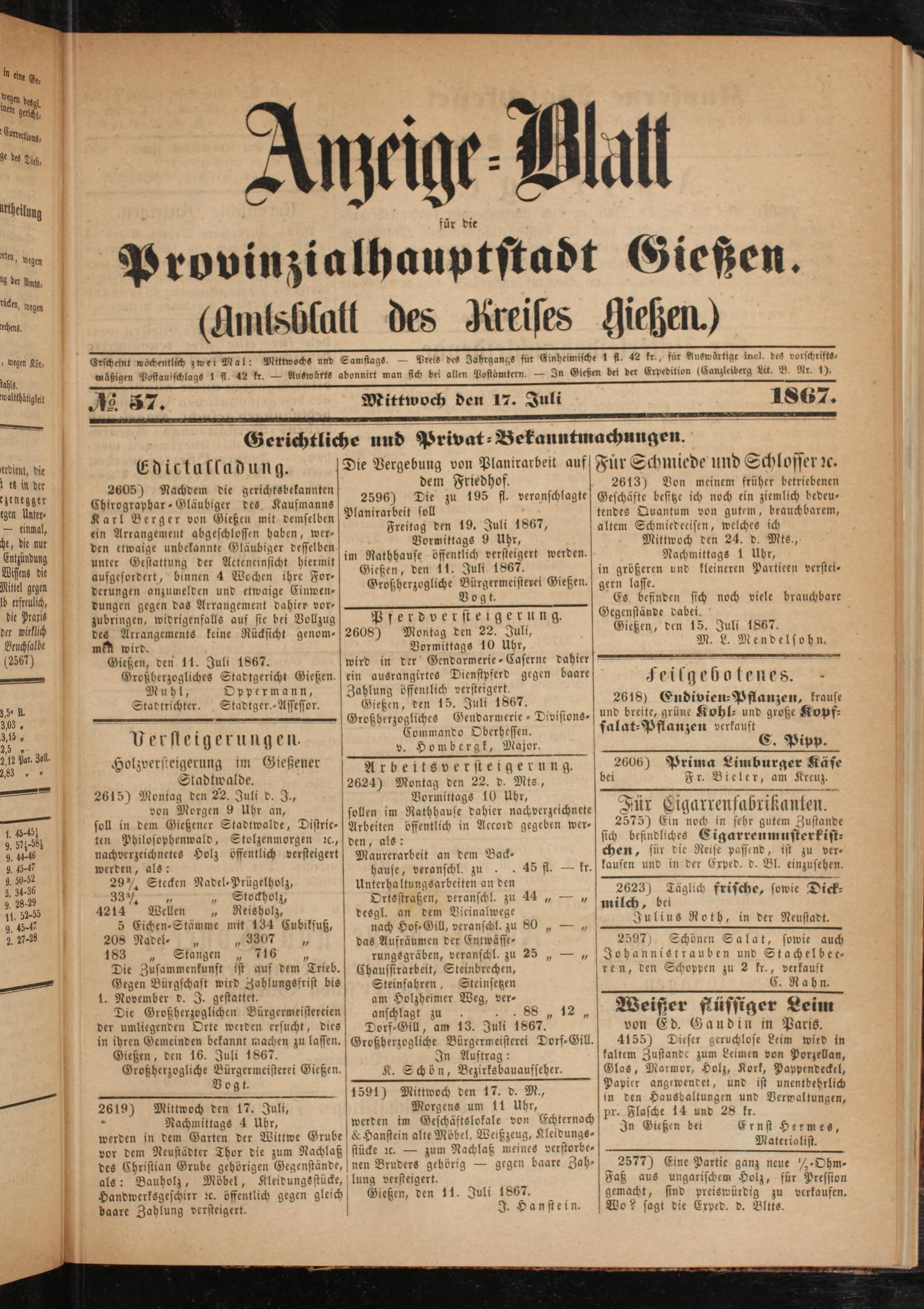 Anzeigeblatt für die Provinzialhauptstadt Gießen. 1840-1867