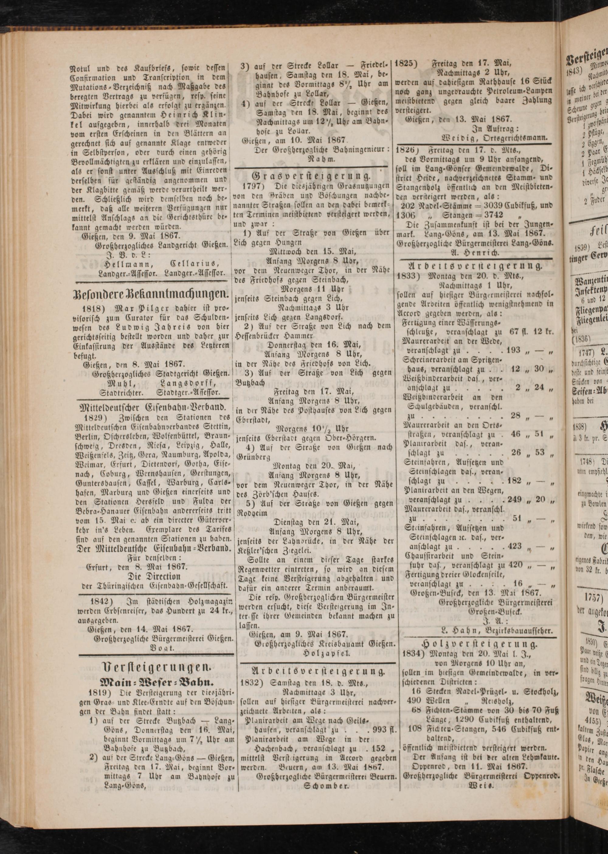Anzeigeblatt für die Provinzialhauptstadt Gießen. 1840-1867