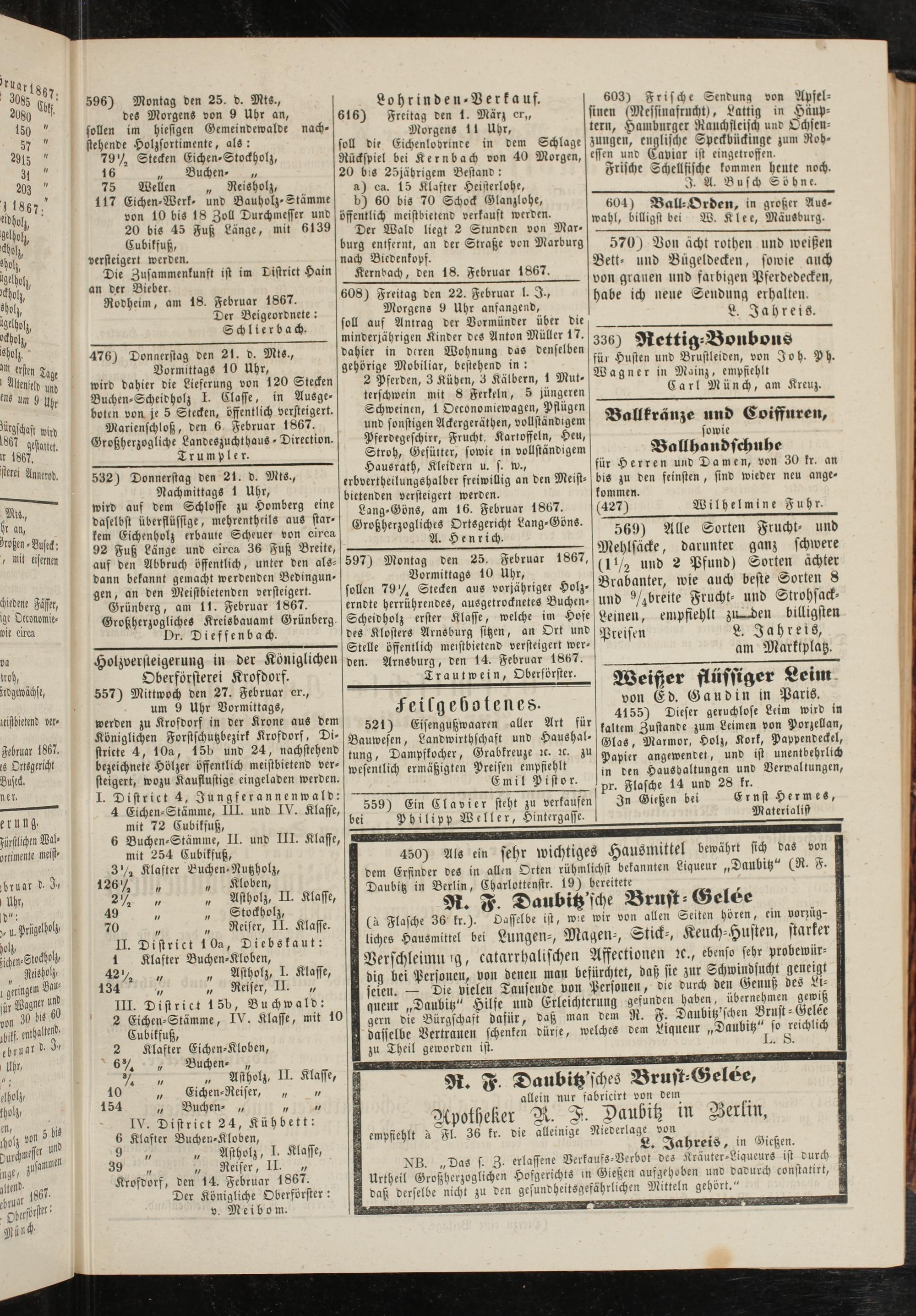Anzeigeblatt für die Provinzialhauptstadt Gießen. 1840-1867