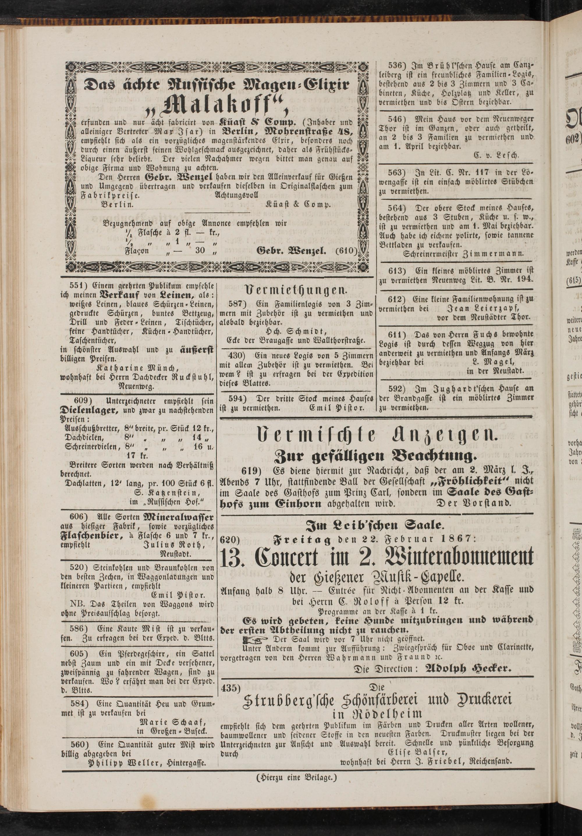 Anzeigeblatt für die Provinzialhauptstadt Gießen. 1840-1867