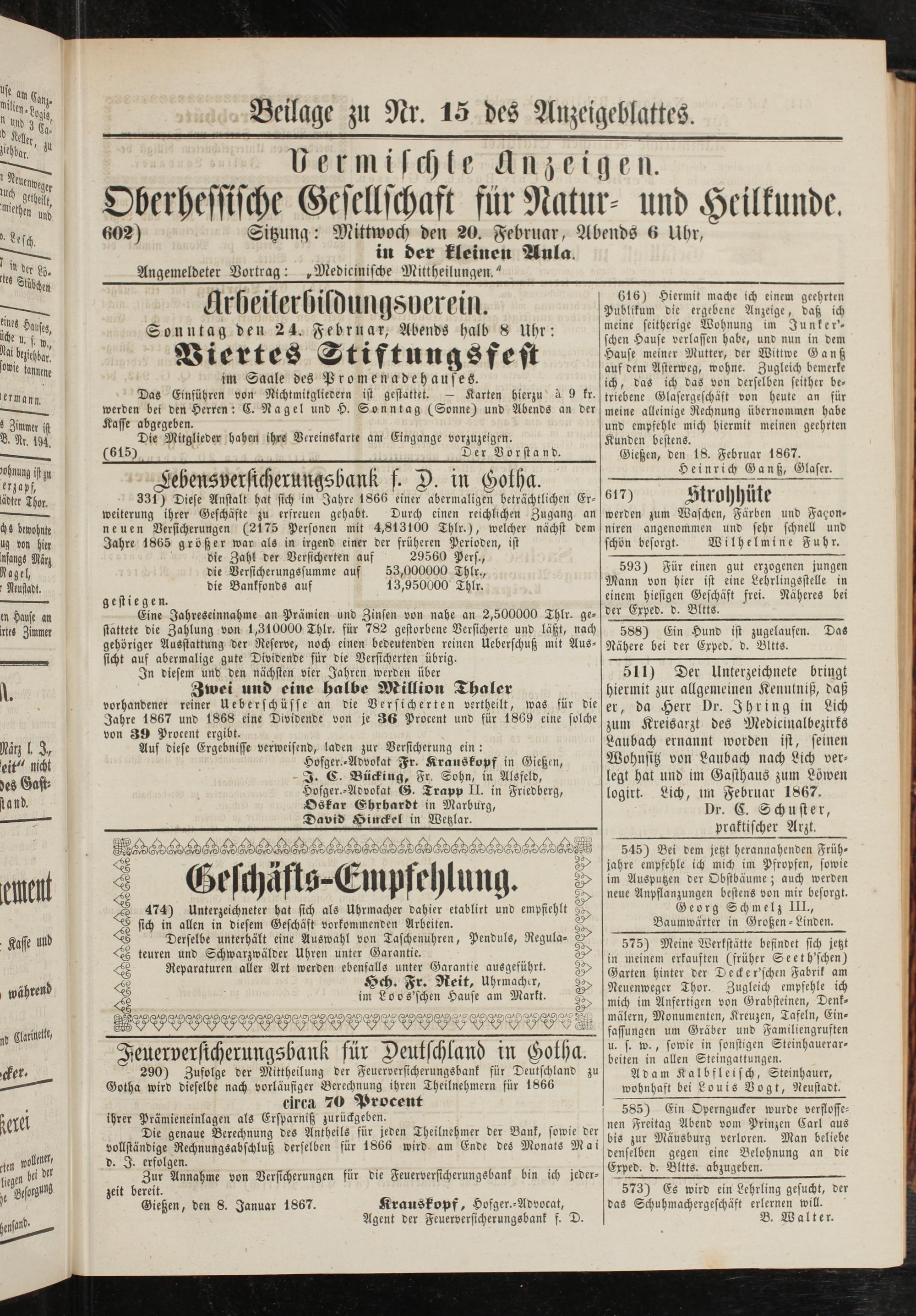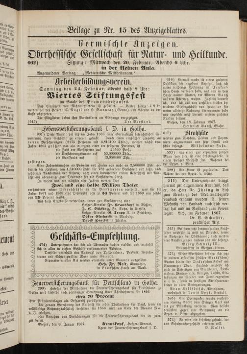 Anzeigeblatt für die Provinzialhauptstadt Gießen. 1840-1867