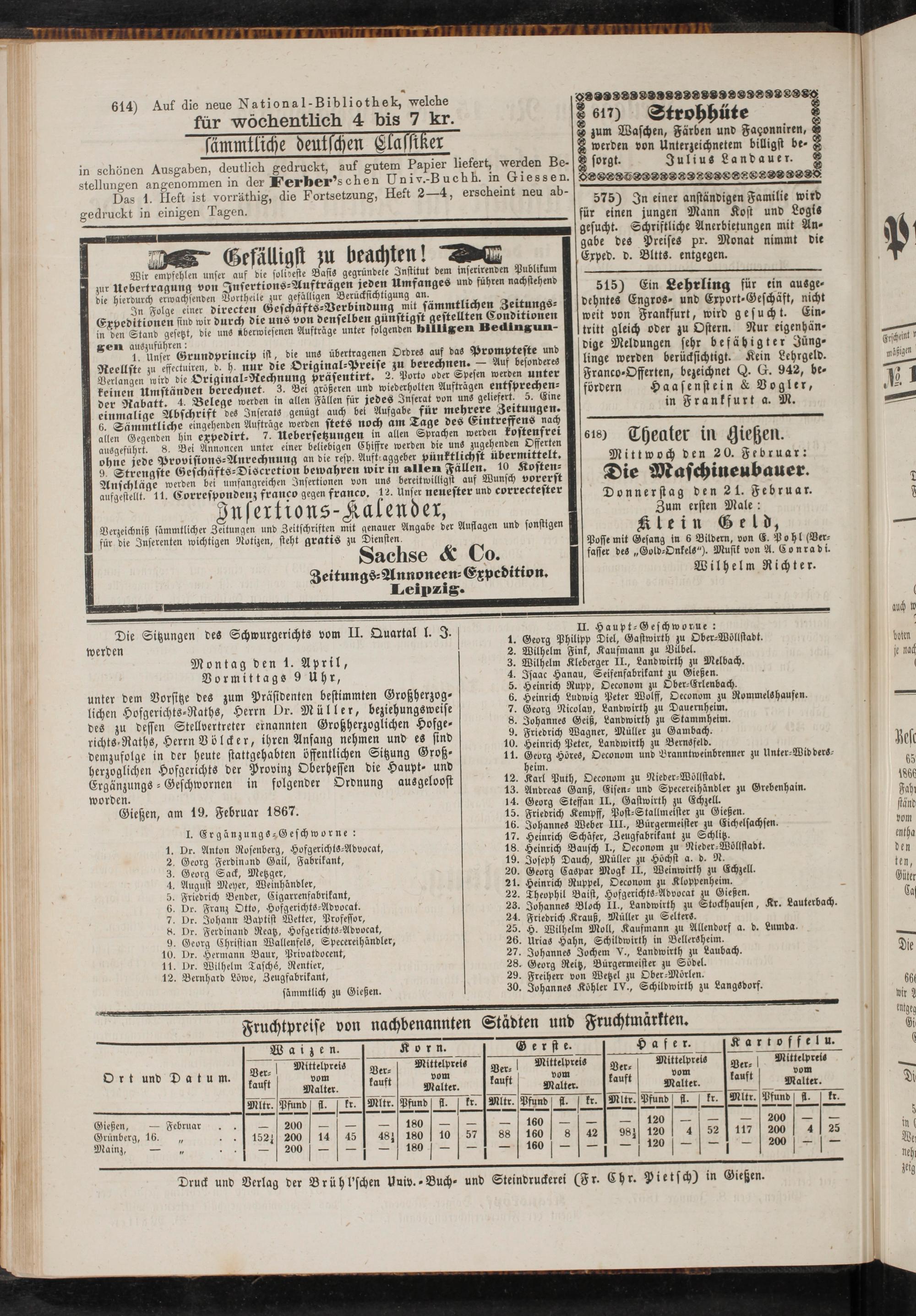 Anzeigeblatt für die Provinzialhauptstadt Gießen. 1840-1867