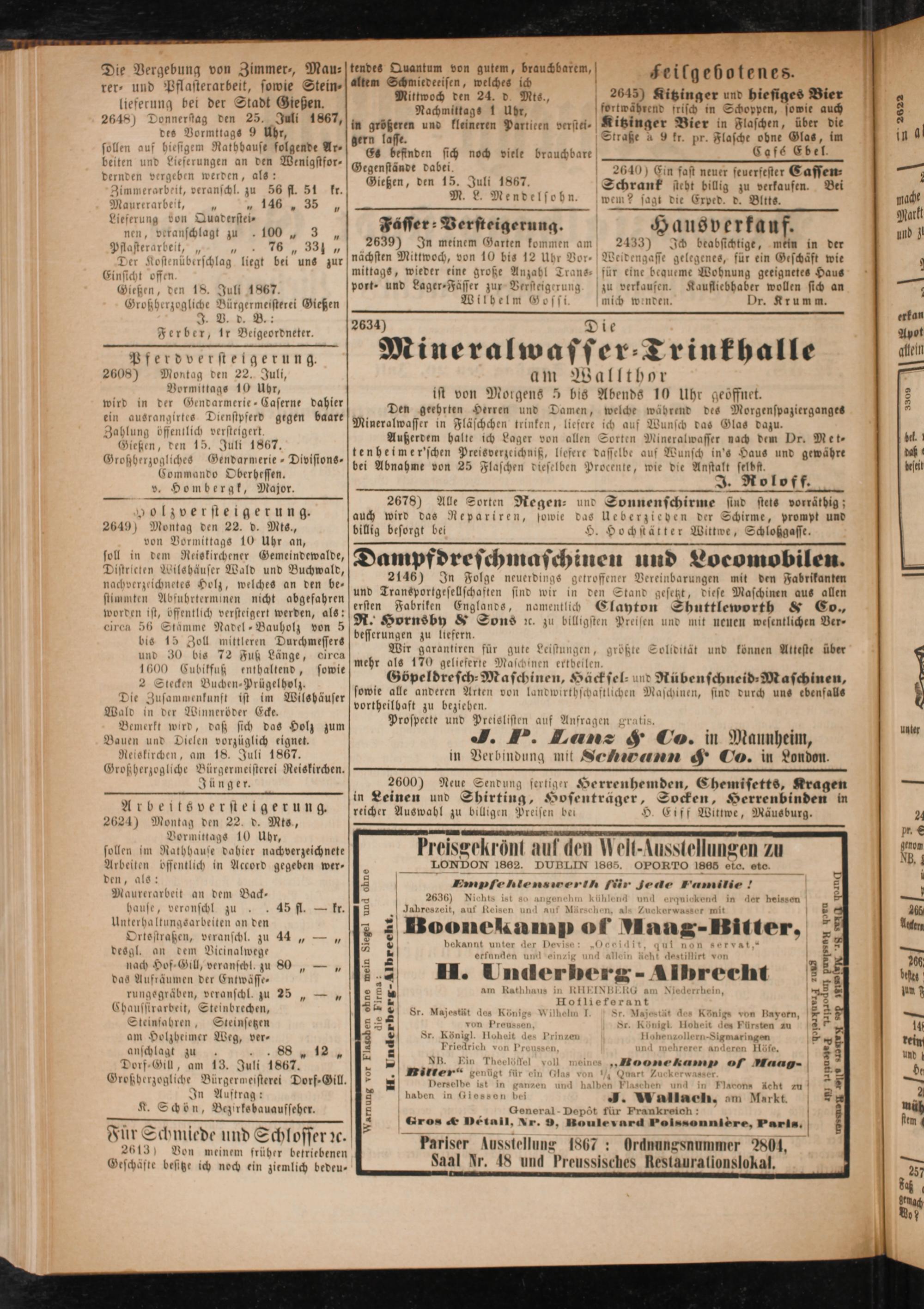 Anzeigeblatt für die Provinzialhauptstadt Gießen. 1840-1867
