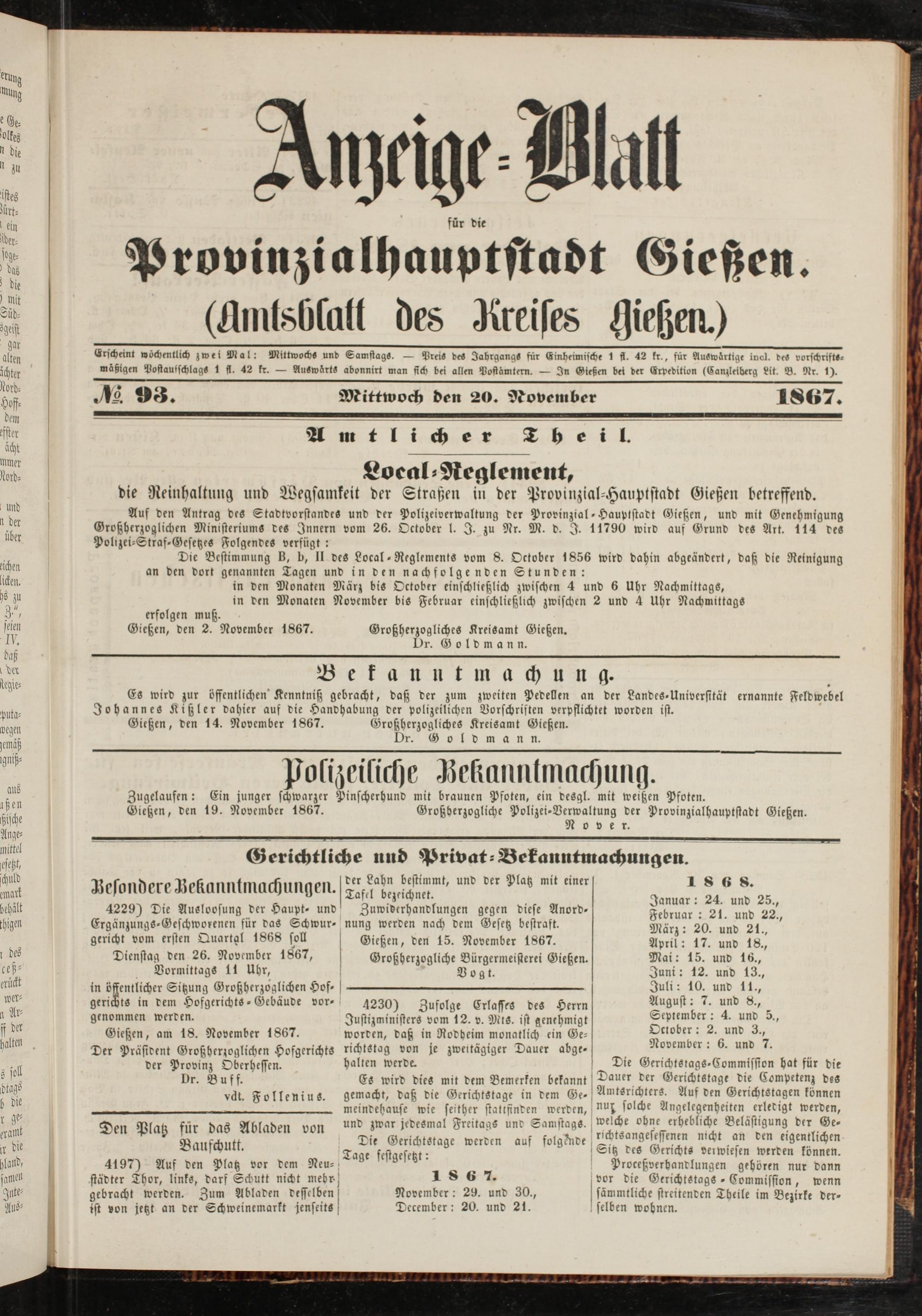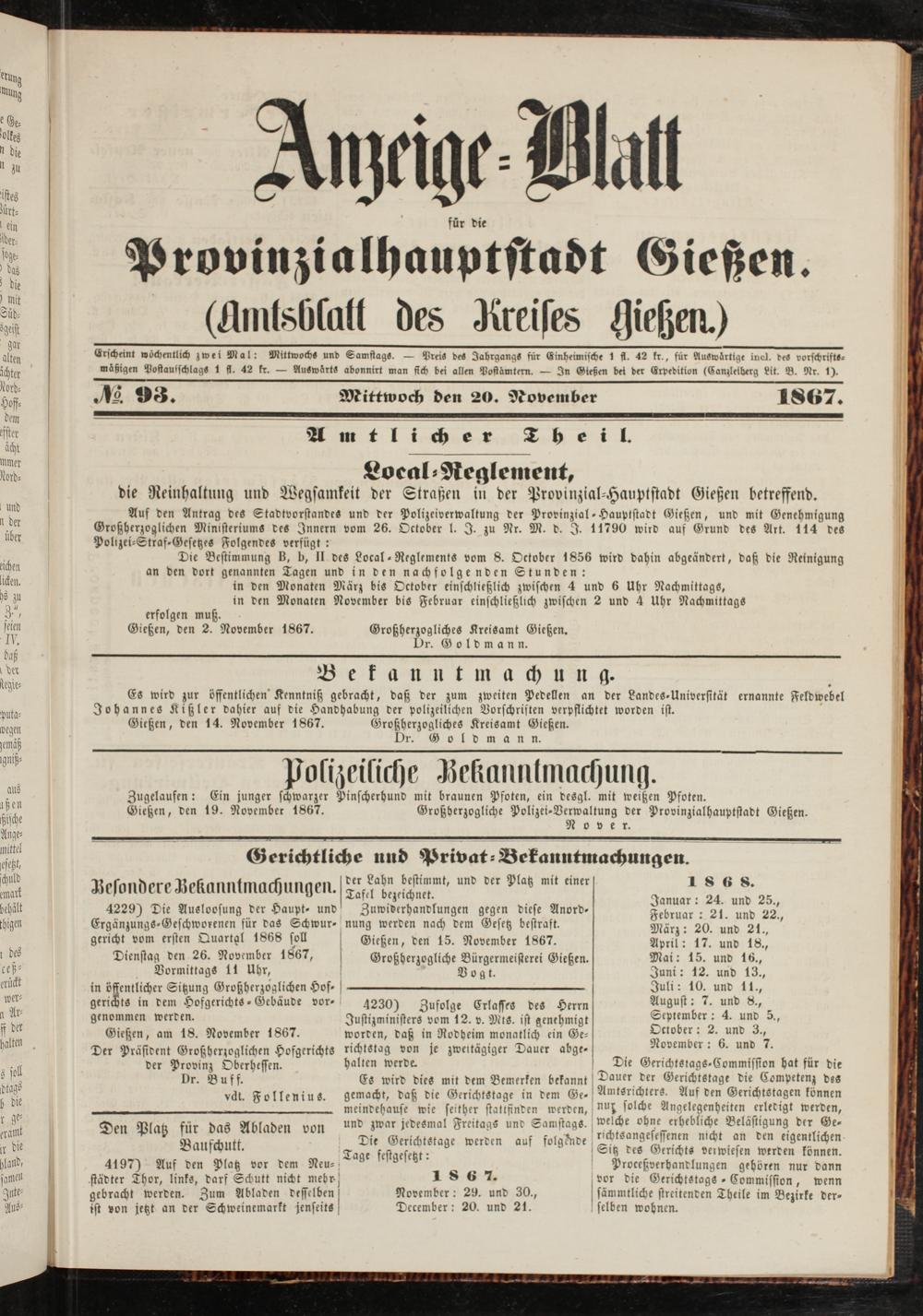 Anzeigeblatt für die Provinzialhauptstadt Gießen. 1840-1867