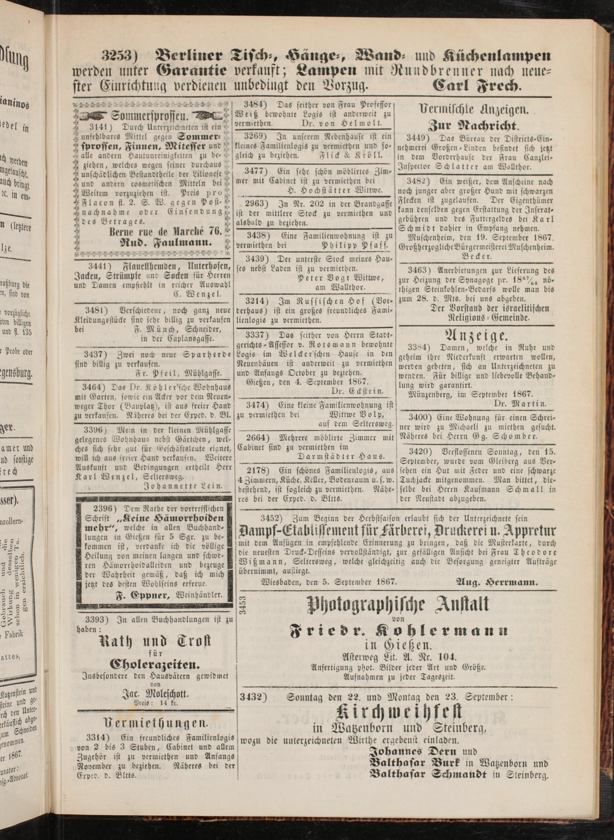 Anzeigeblatt für die Provinzialhauptstadt Gießen. 1840-1867