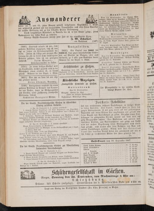 Anzeigeblatt für die Provinzialhauptstadt Gießen. 1840-1867