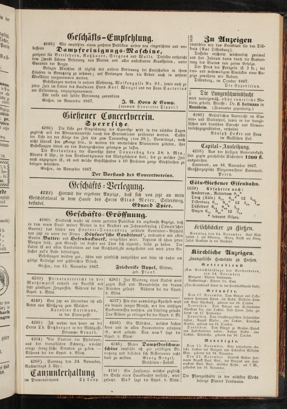 Anzeigeblatt für die Provinzialhauptstadt Gießen. 1840-1867