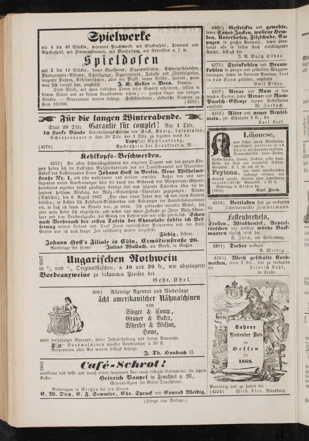 Anzeigeblatt für die Provinzialhauptstadt Gießen. 1840-1867