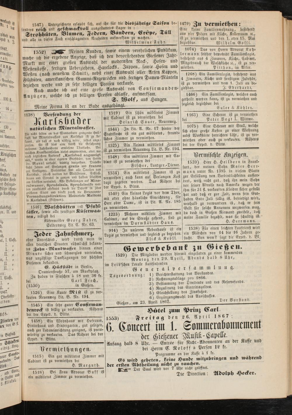 Anzeigeblatt für die Provinzialhauptstadt Gießen. 1840-1867