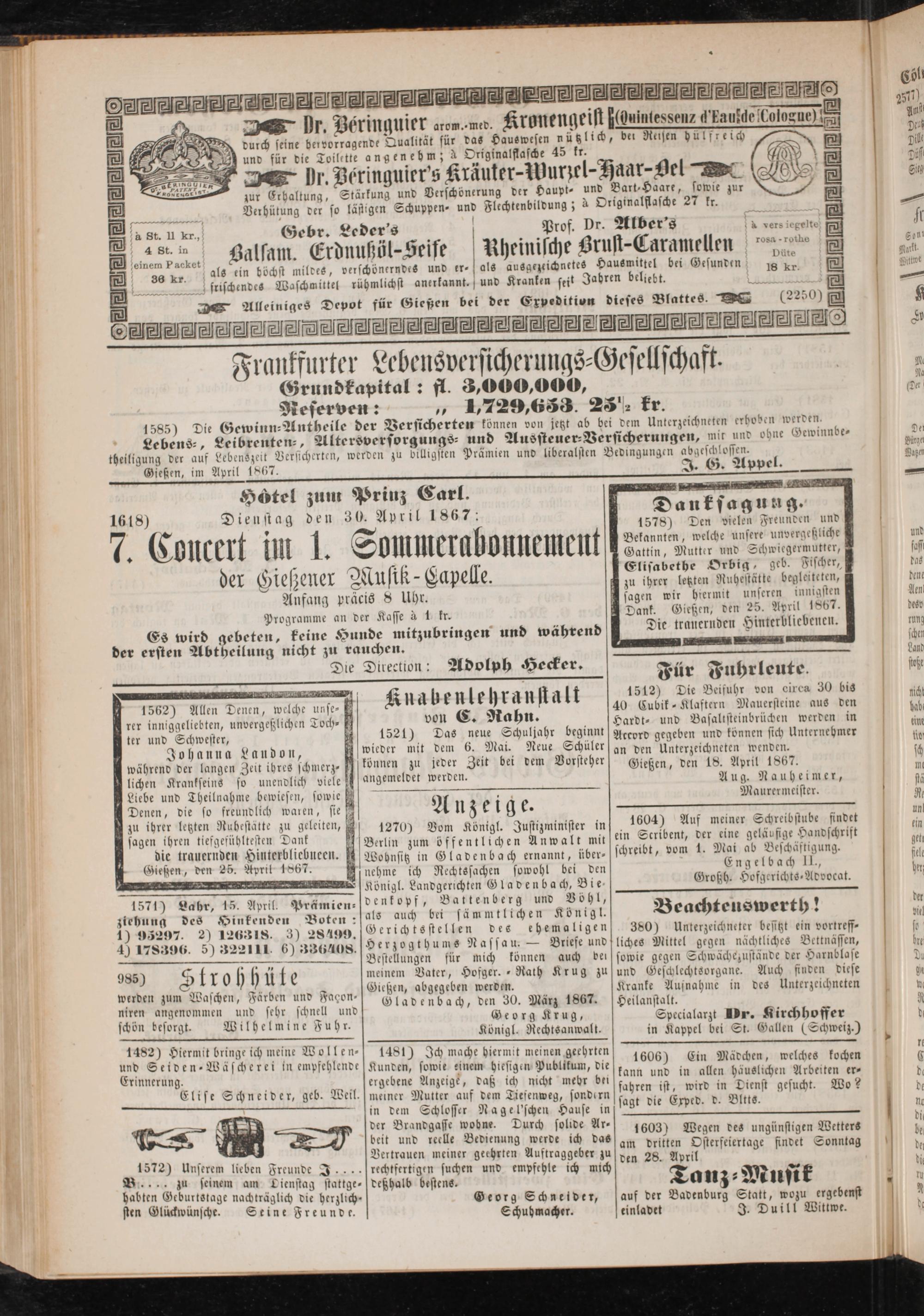 Anzeigeblatt für die Provinzialhauptstadt Gießen. 1840-1867