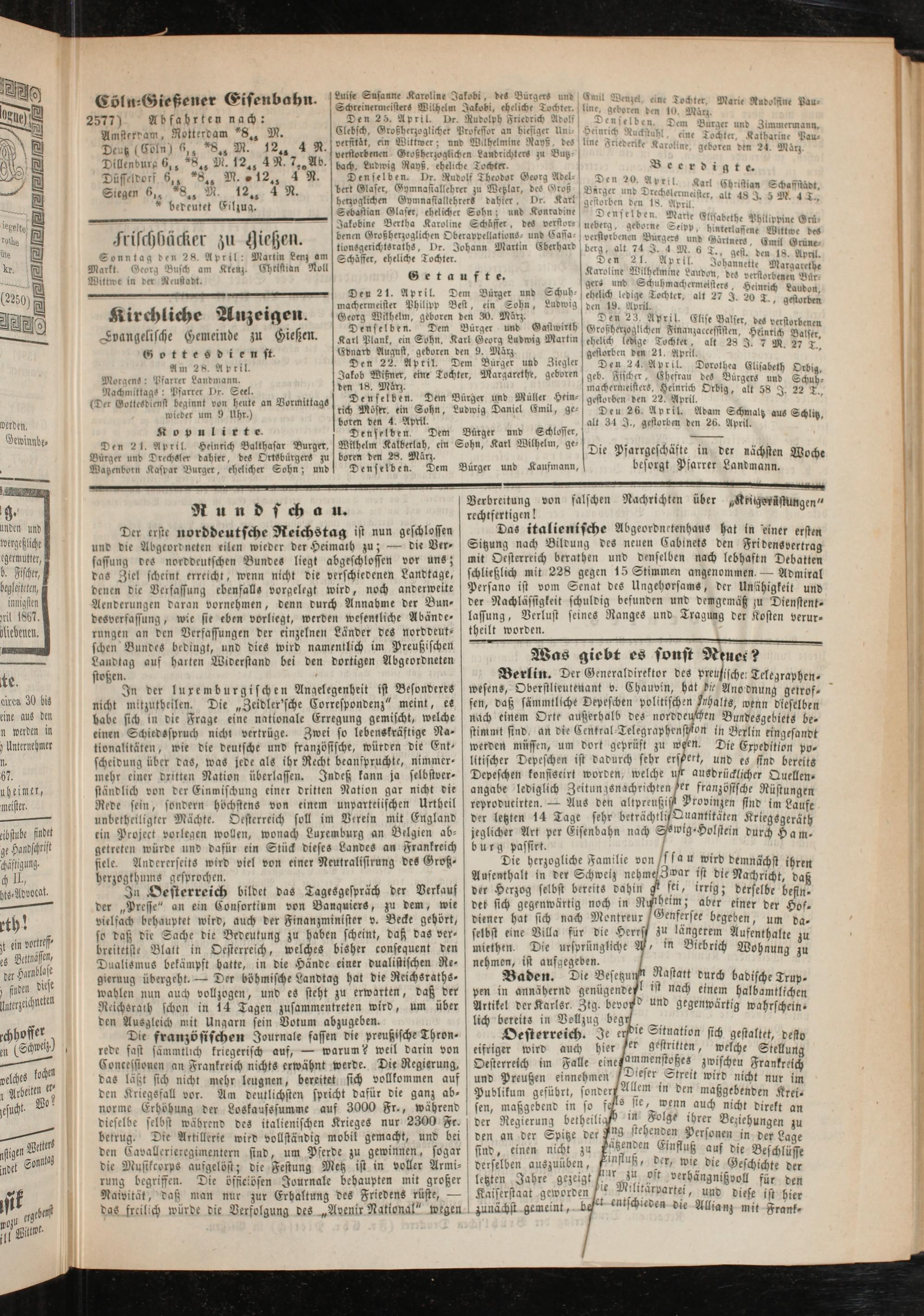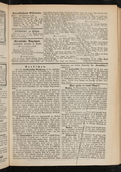Anzeigeblatt für die Provinzialhauptstadt Gießen. 1840-1867