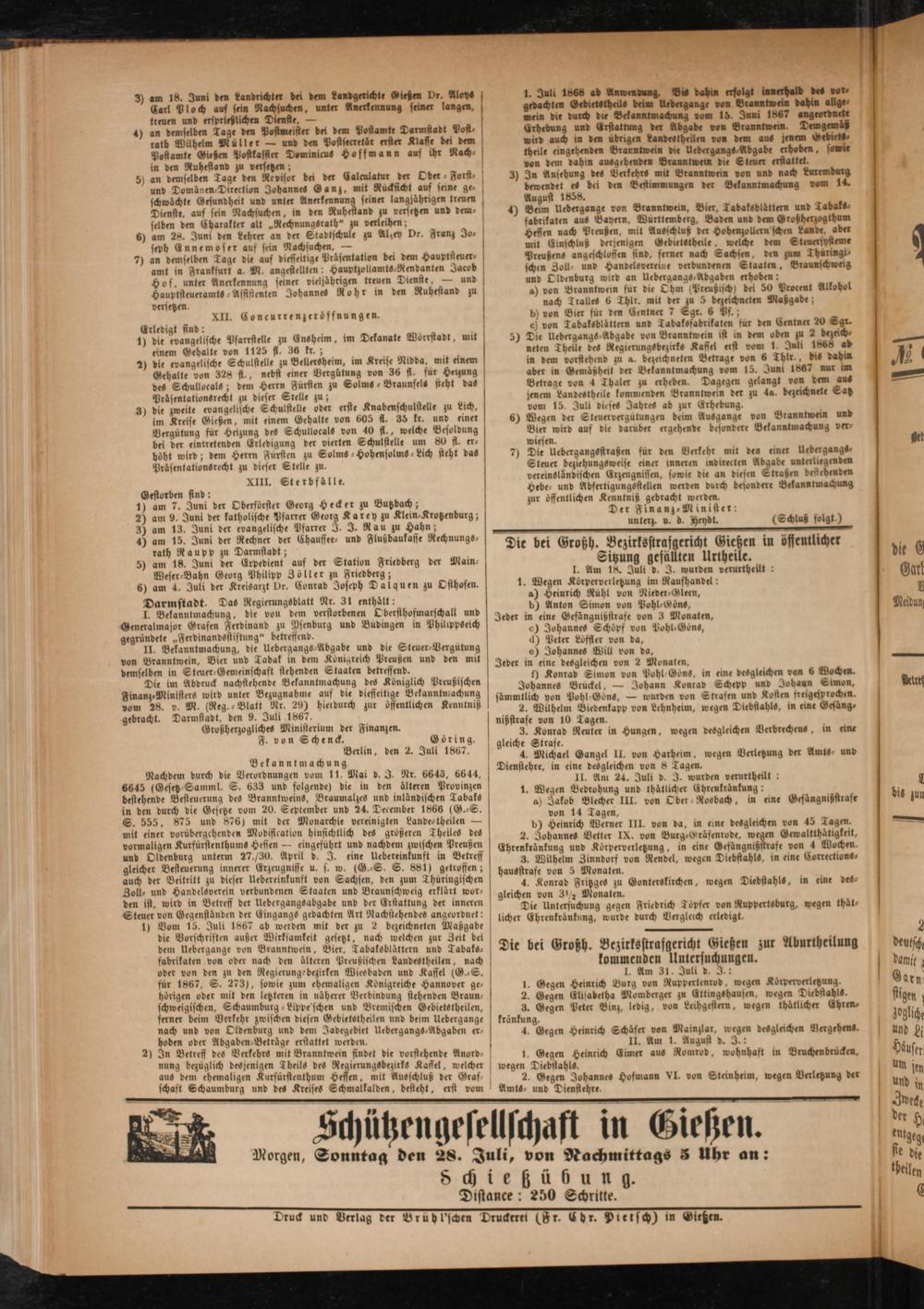 Anzeigeblatt für die Provinzialhauptstadt Gießen. 1840-1867