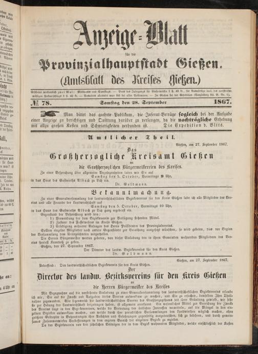 Anzeigeblatt für die Provinzialhauptstadt Gießen. 1840-1867