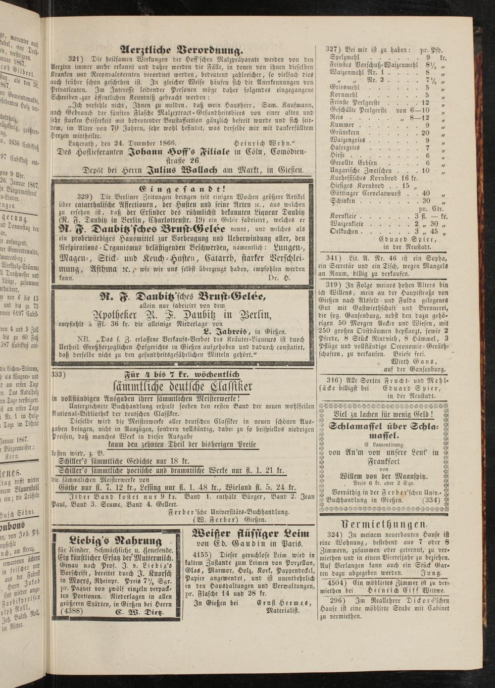 Anzeigeblatt für die Provinzialhauptstadt Gießen. 1840-1867