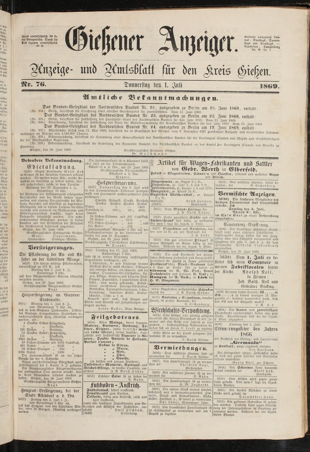 Gießener Anzeiger. 1868-1943