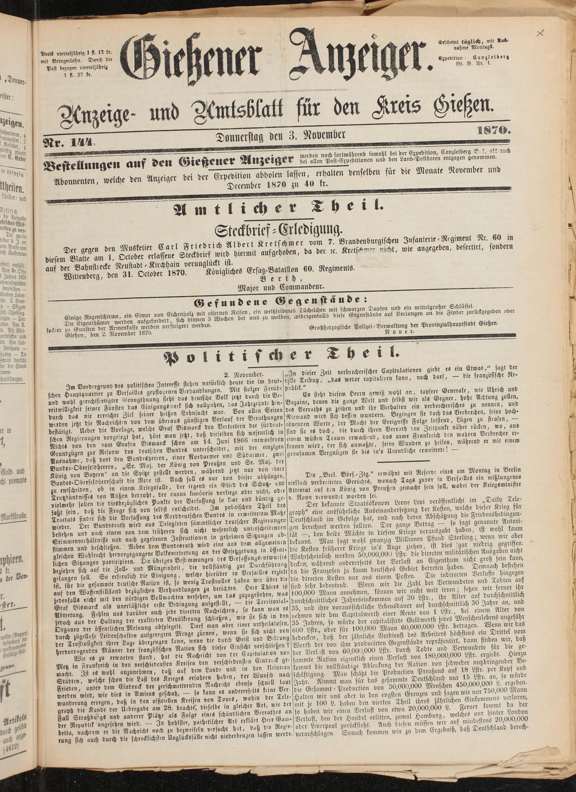 Gießener Anzeiger. 1868-1943