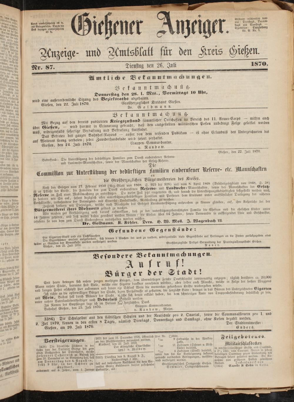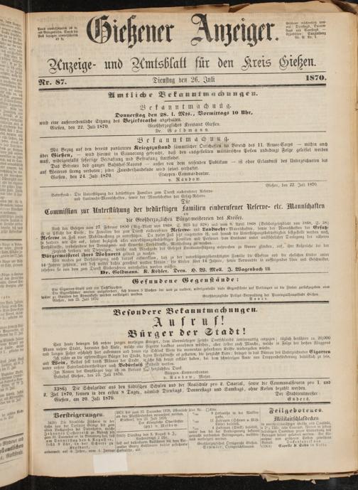 Gießener Anzeiger. 1868-1943