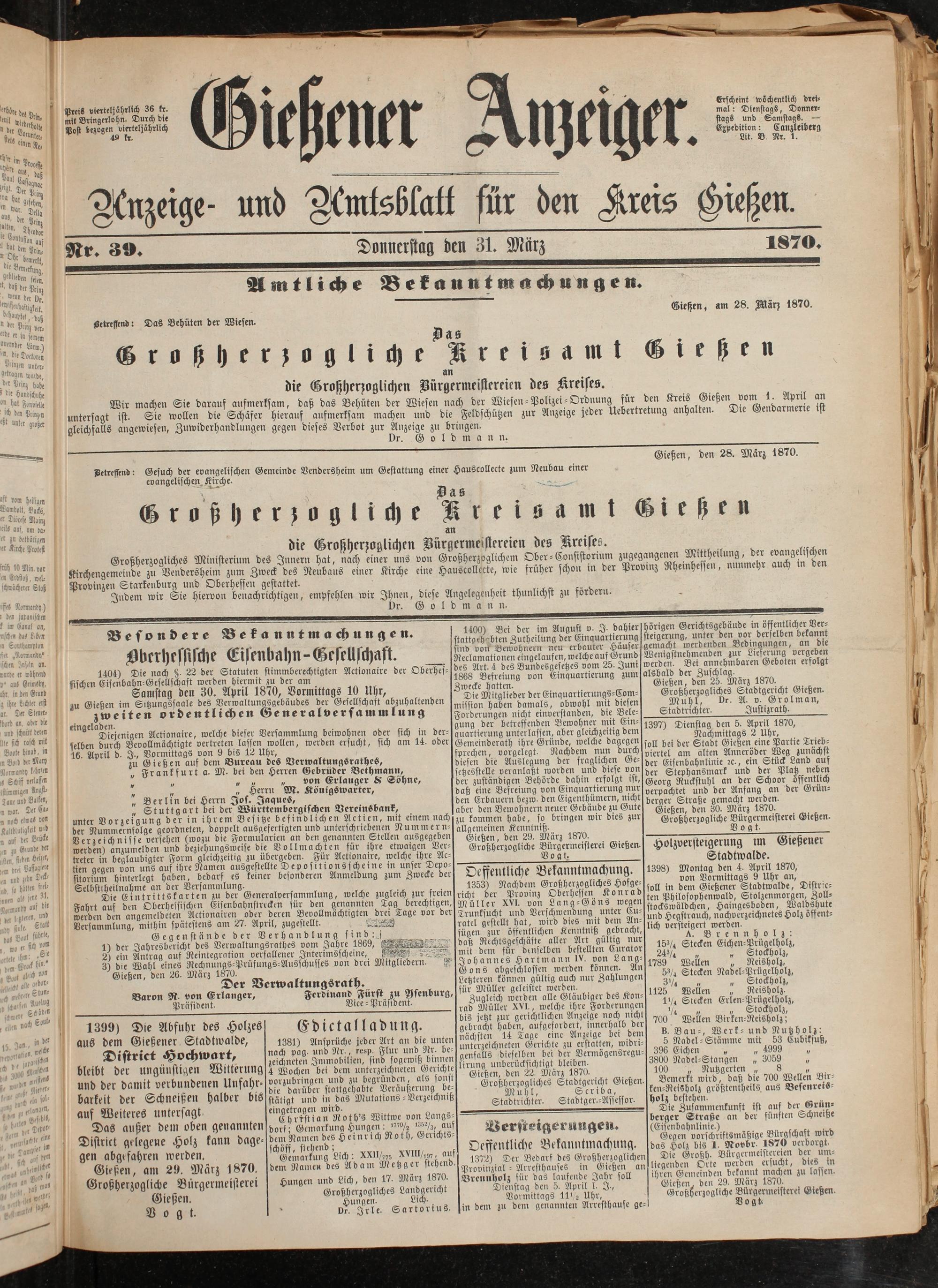 Gießener Anzeiger. 1868-1943