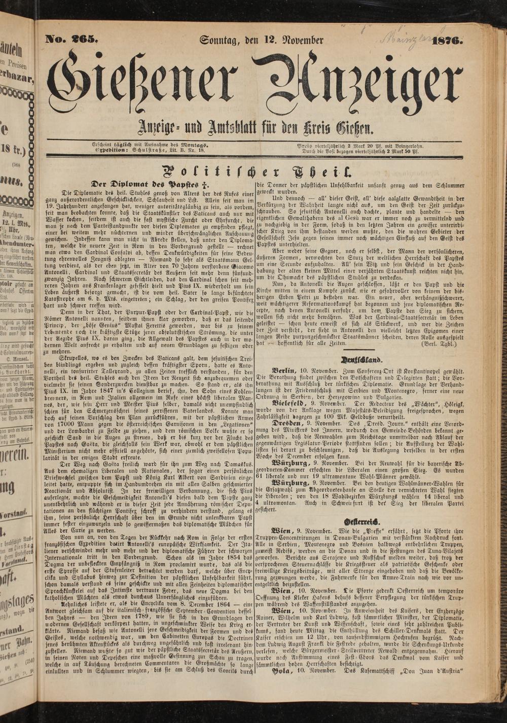 Gießener Anzeiger. 1868-1943