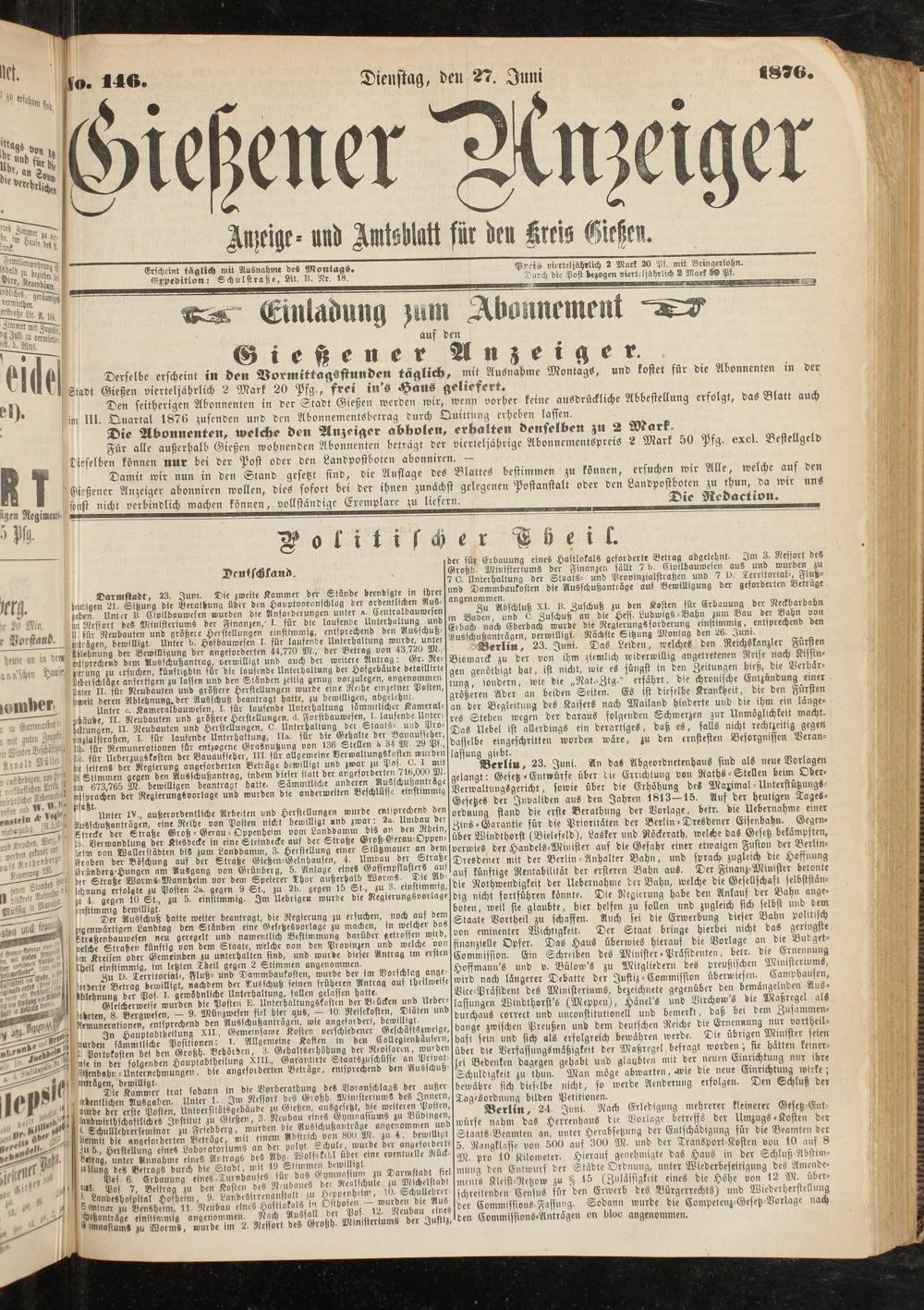 Gießener Anzeiger. 1868-1943
