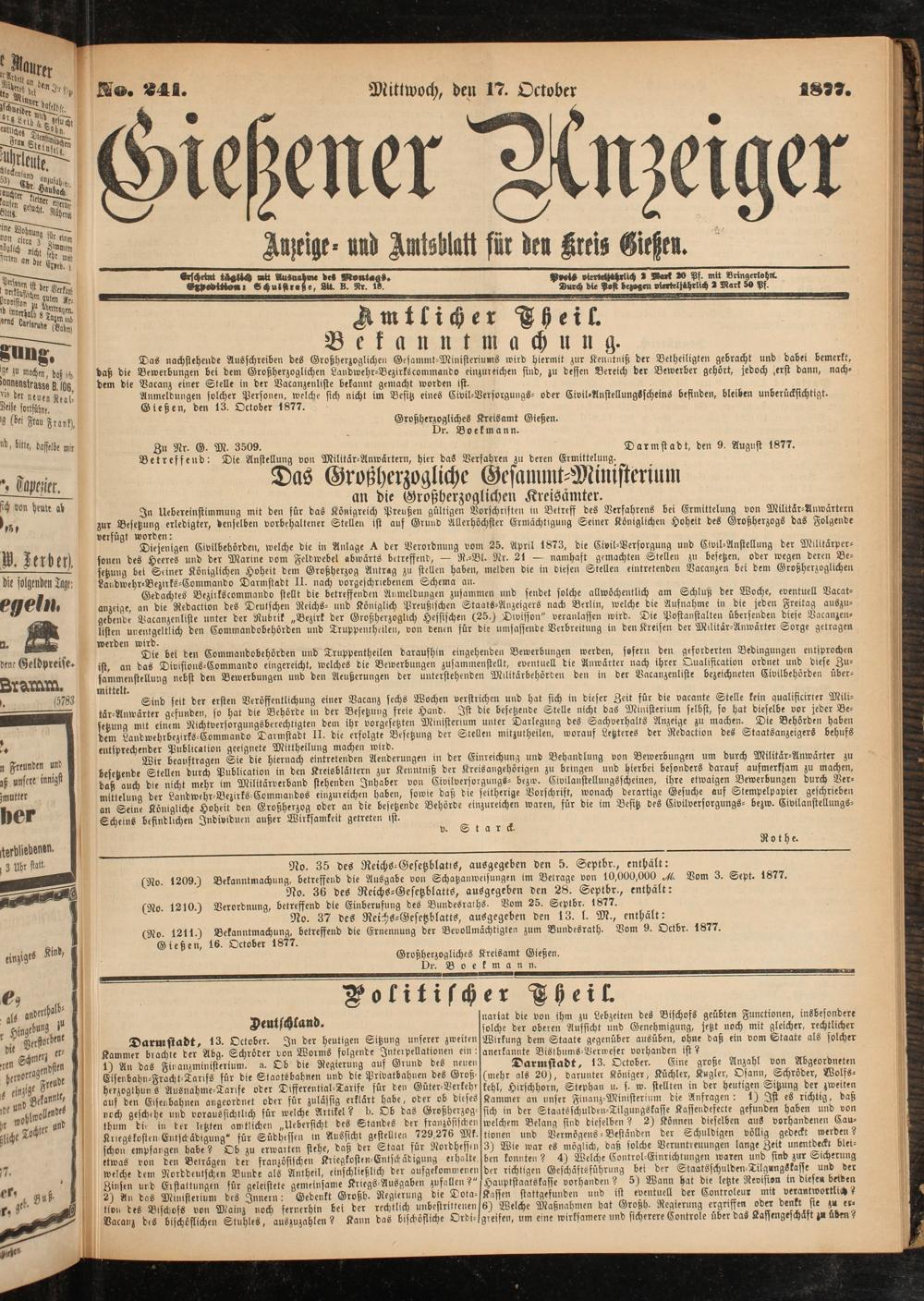 Gießener Anzeiger. 1868-1943