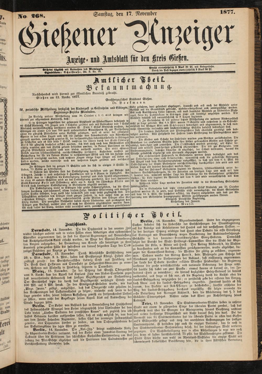 Gießener Anzeiger. 1868-1943