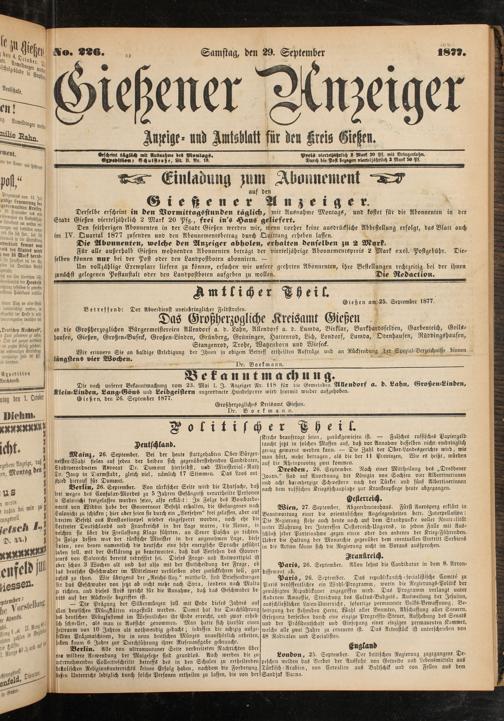 Gießener Anzeiger. 1868-1943
