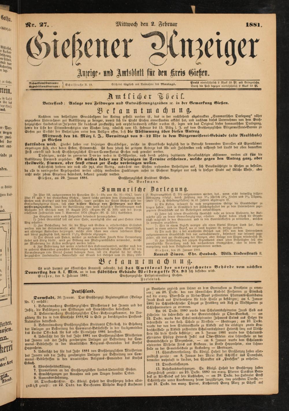 Gießener Anzeiger. 1868-1943