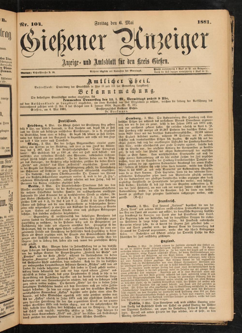 Gießener Anzeiger. 1868-1943