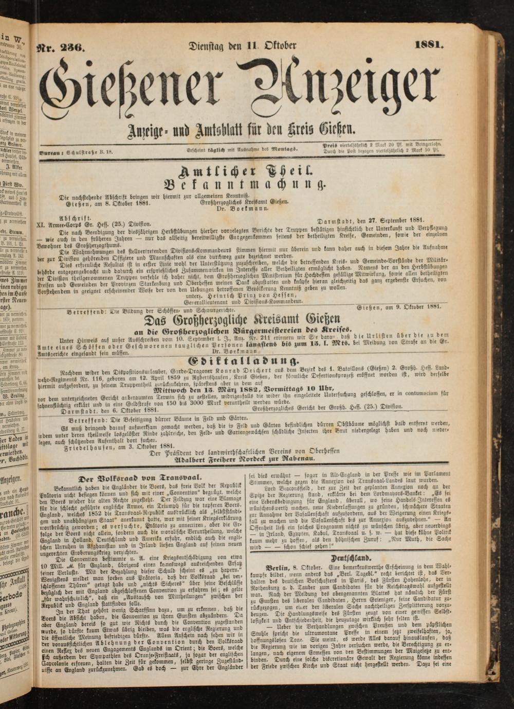 Gießener Anzeiger. 1868-1943