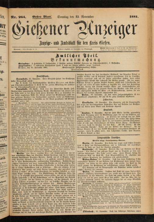 Gießener Anzeiger. 1868-1943
