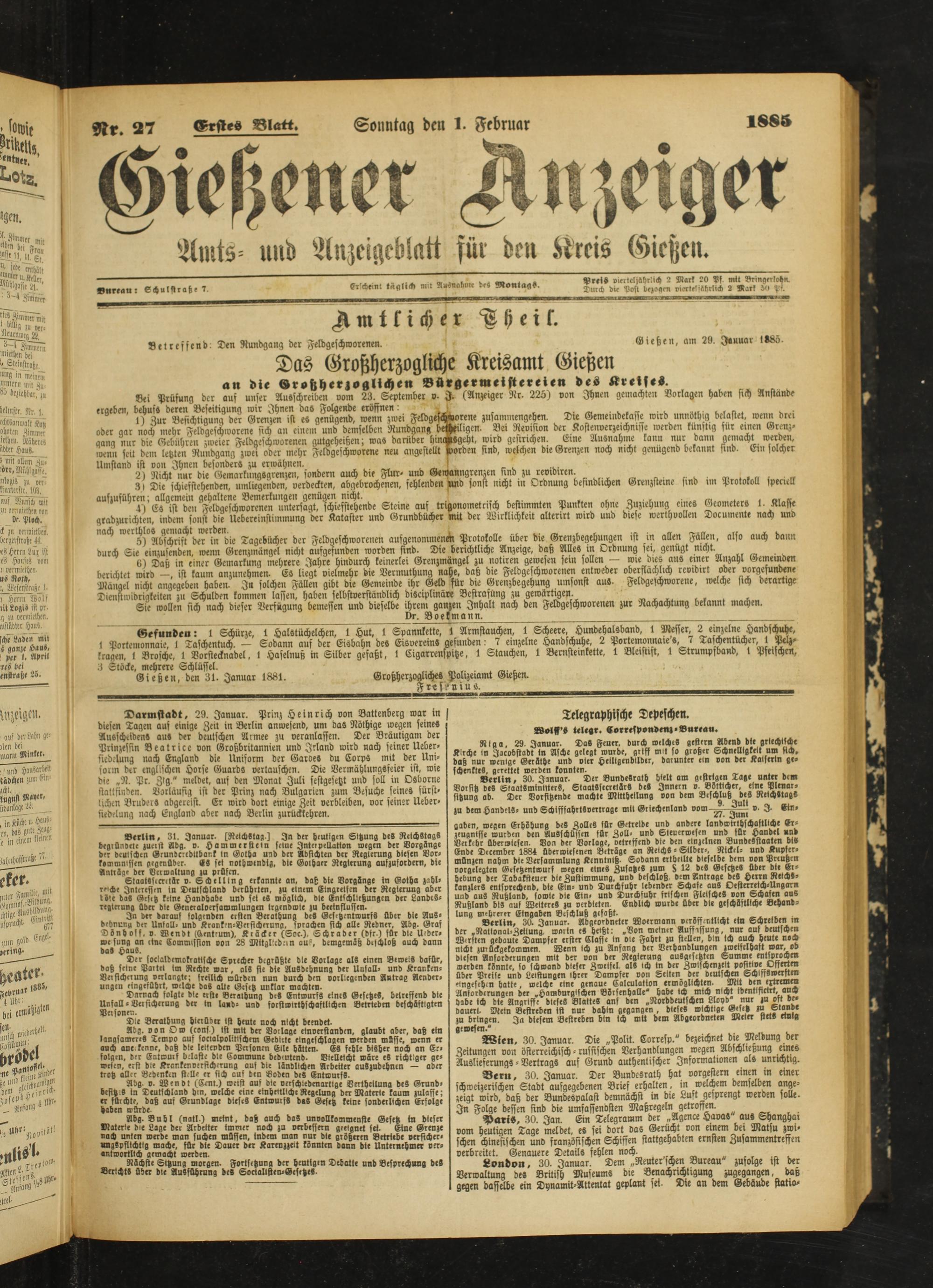 1.2.1885 Erstes Blatt