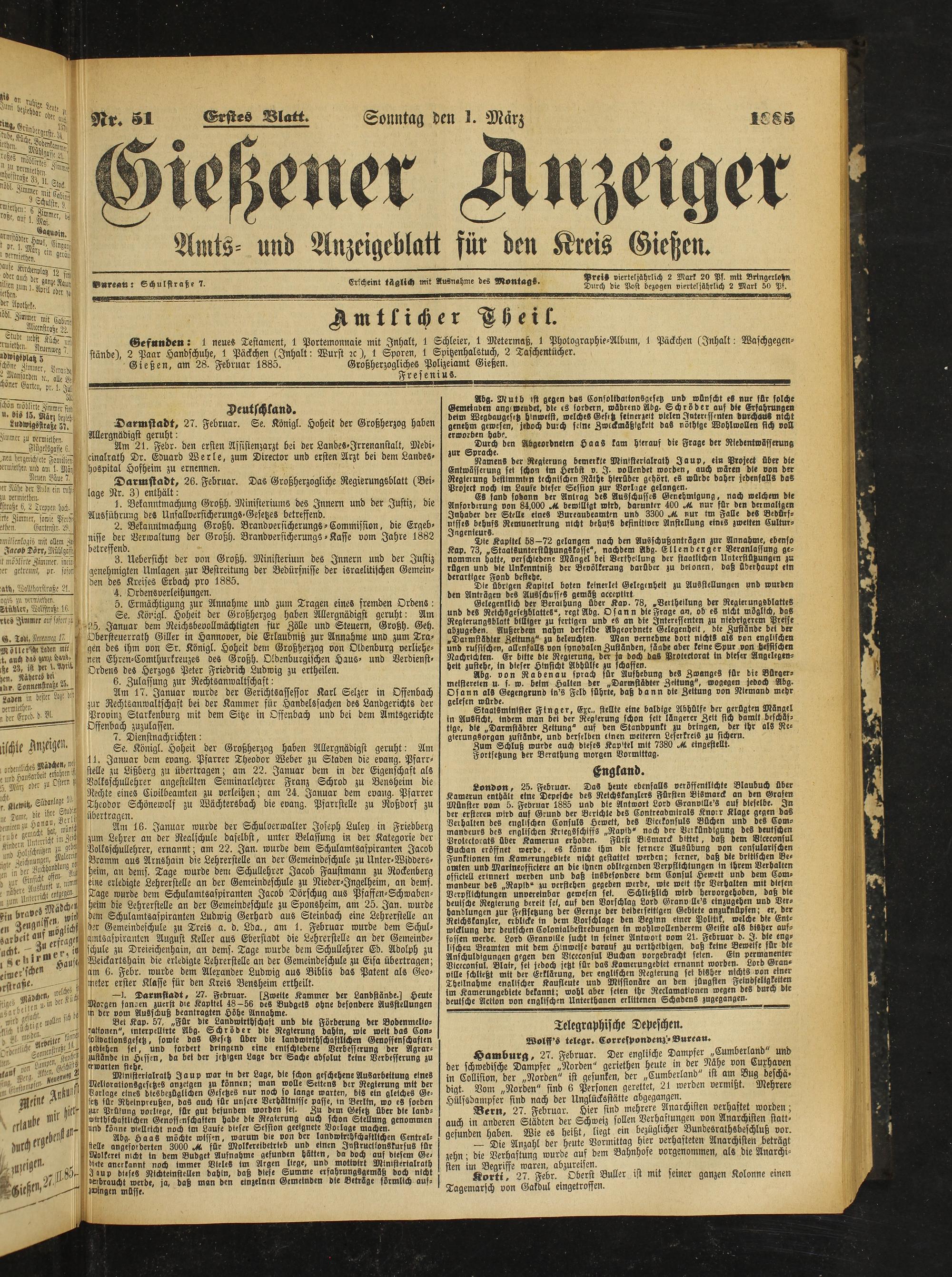 1.3.1885 Erstes Blatt
