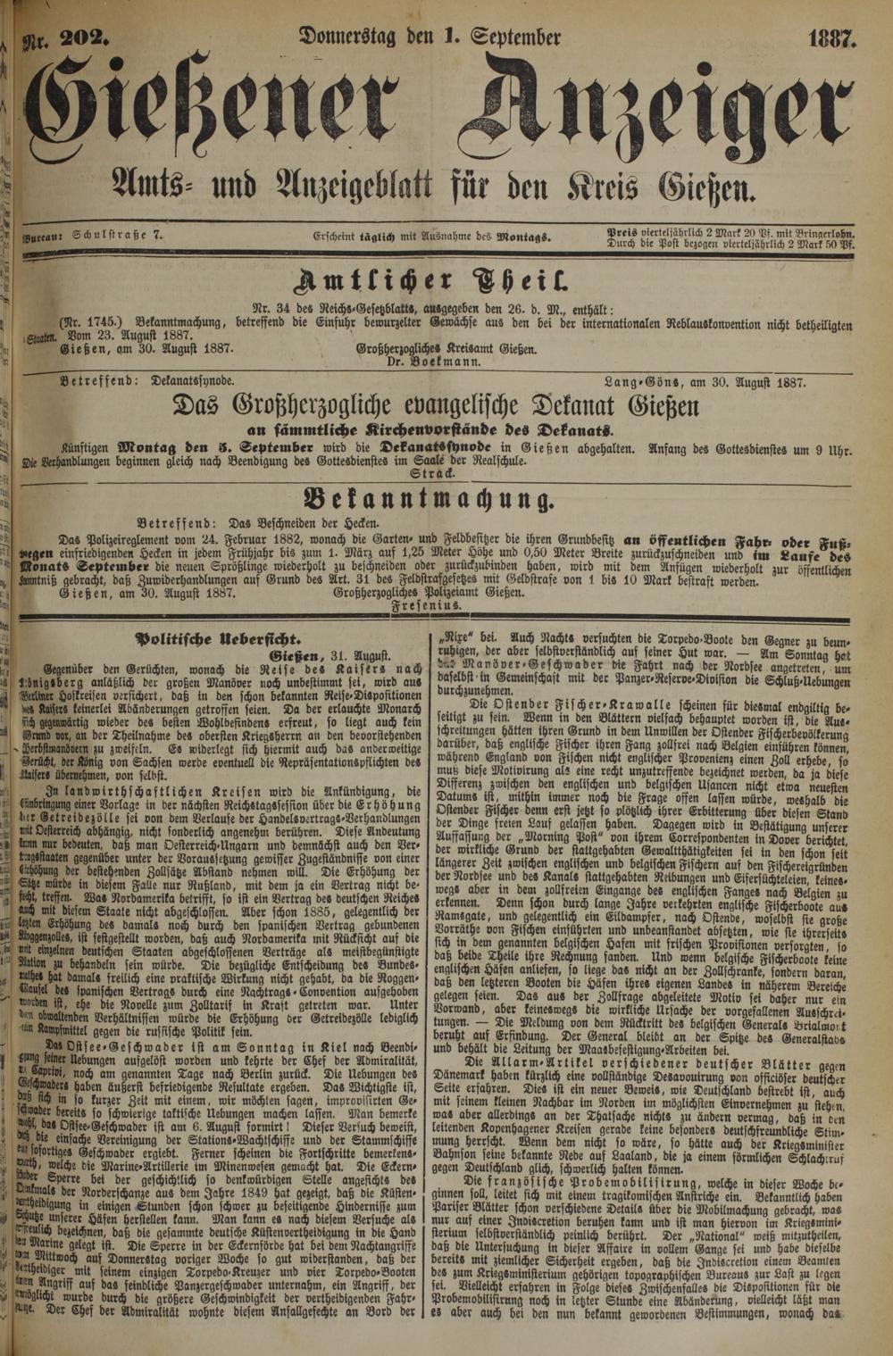 Gießener Anzeiger. 1868-1943