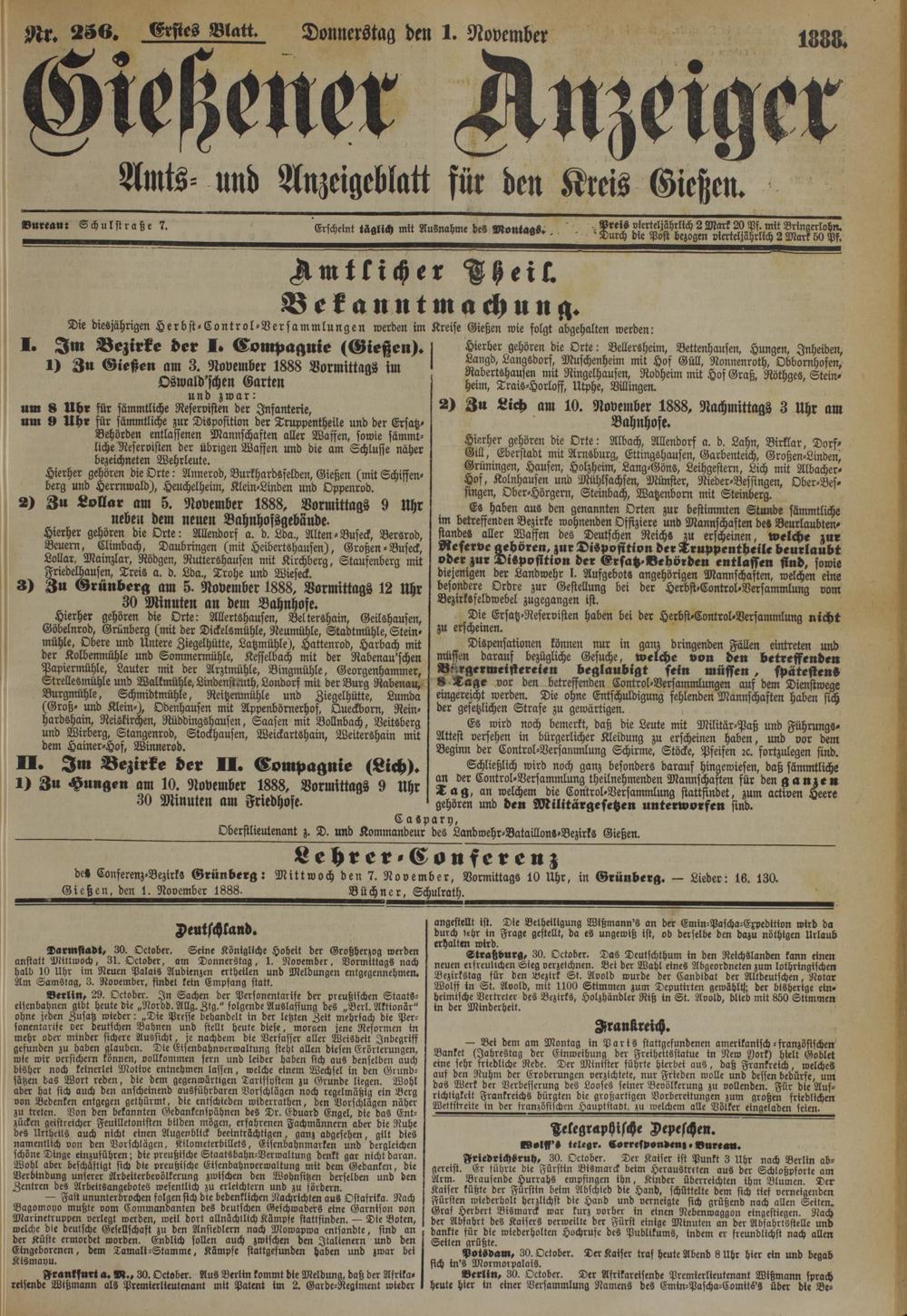 1.11.1888 Erstes Blatt