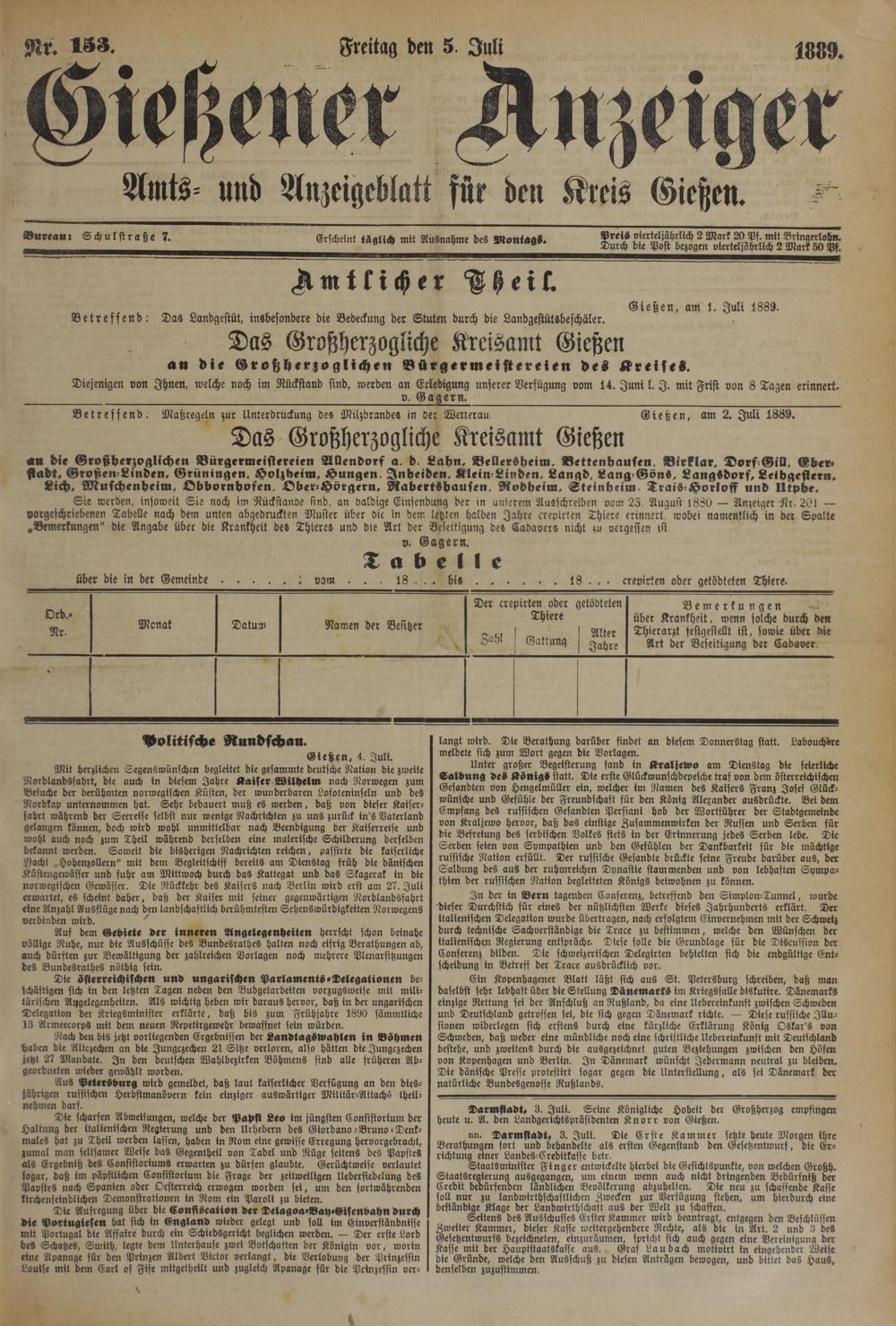 Gießener Anzeiger. 1868-1943