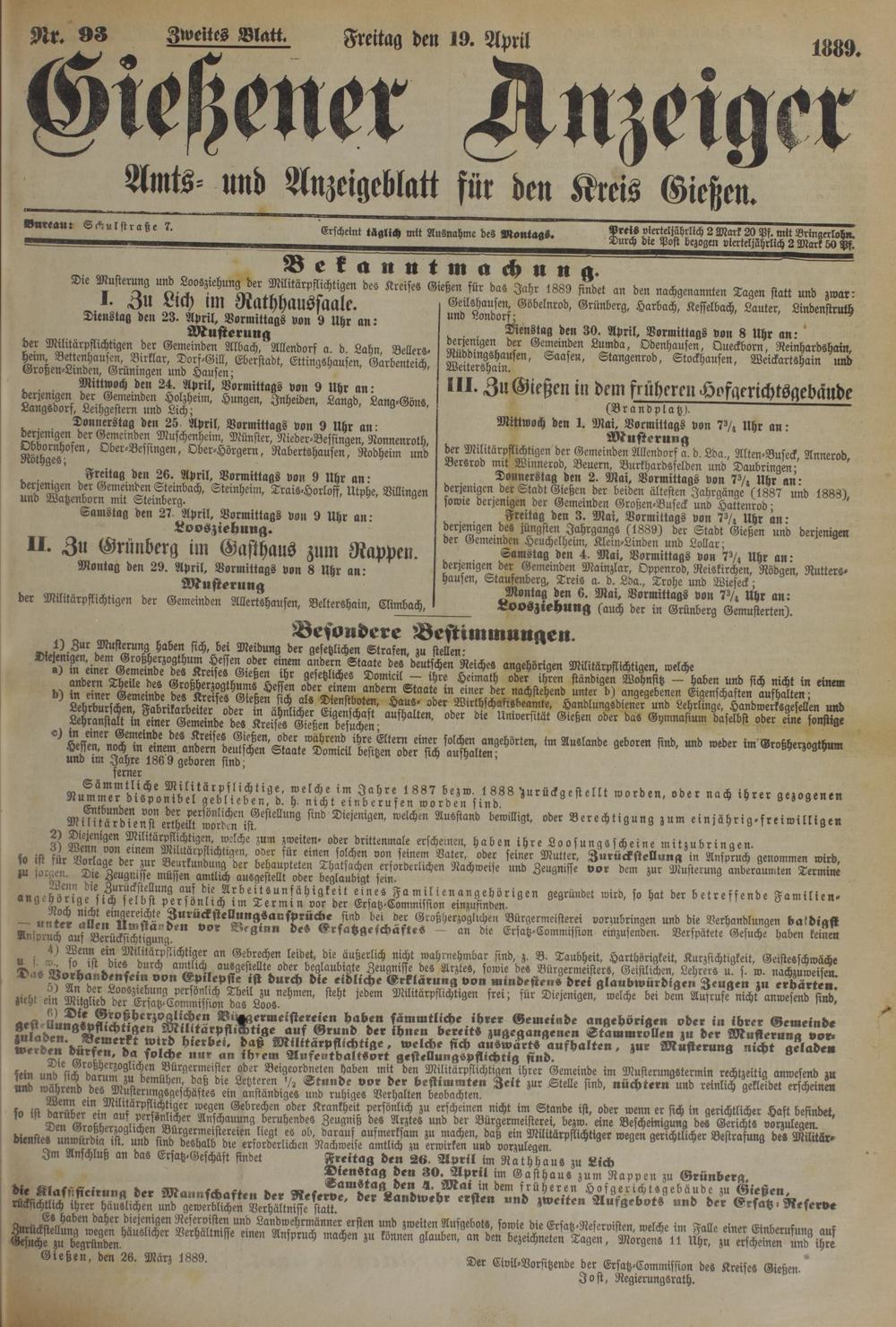 19.4.1889 Zweites Blatt