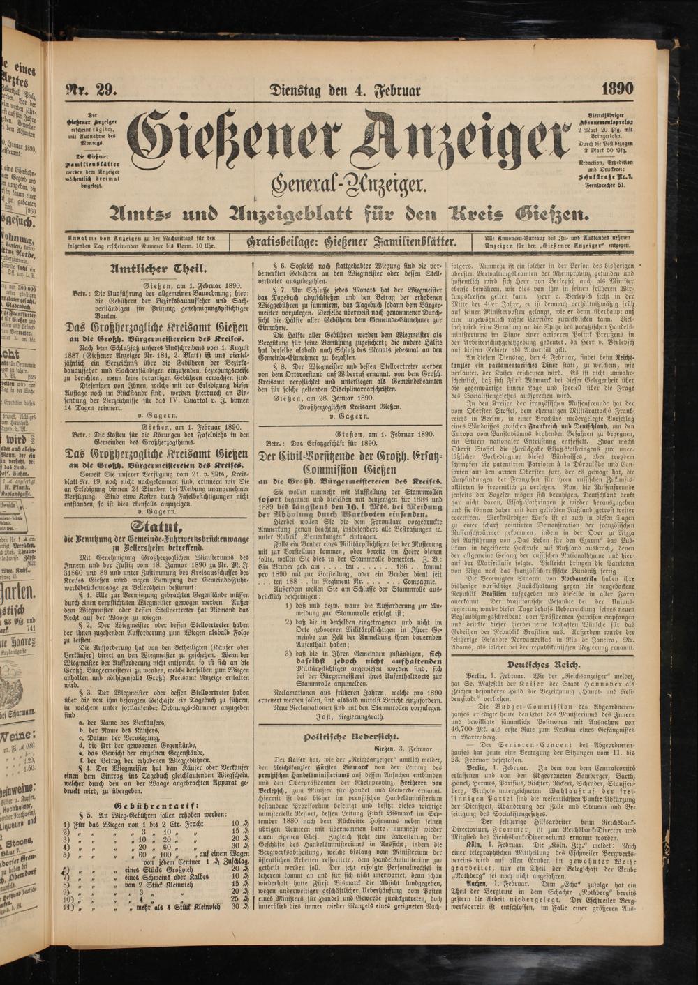 Gießener Anzeiger. 1868-1943