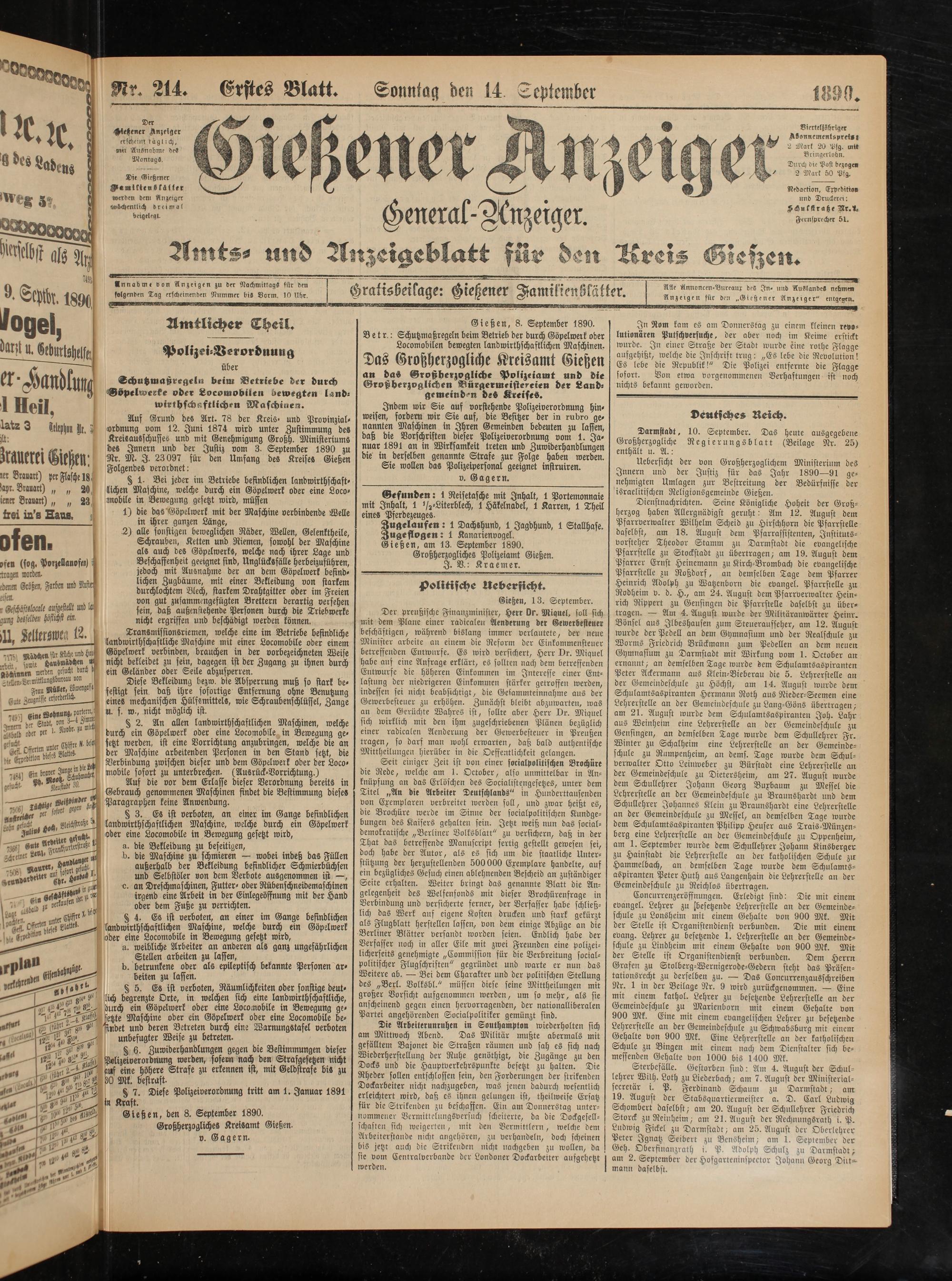 14.9.1890 Erstes Blatt