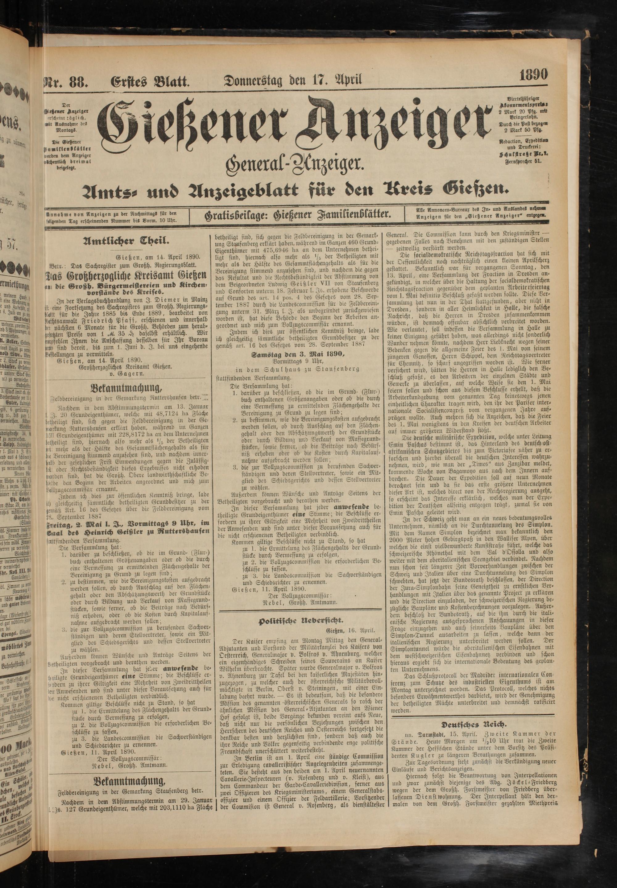 17.4.1890 Erstes Blatt