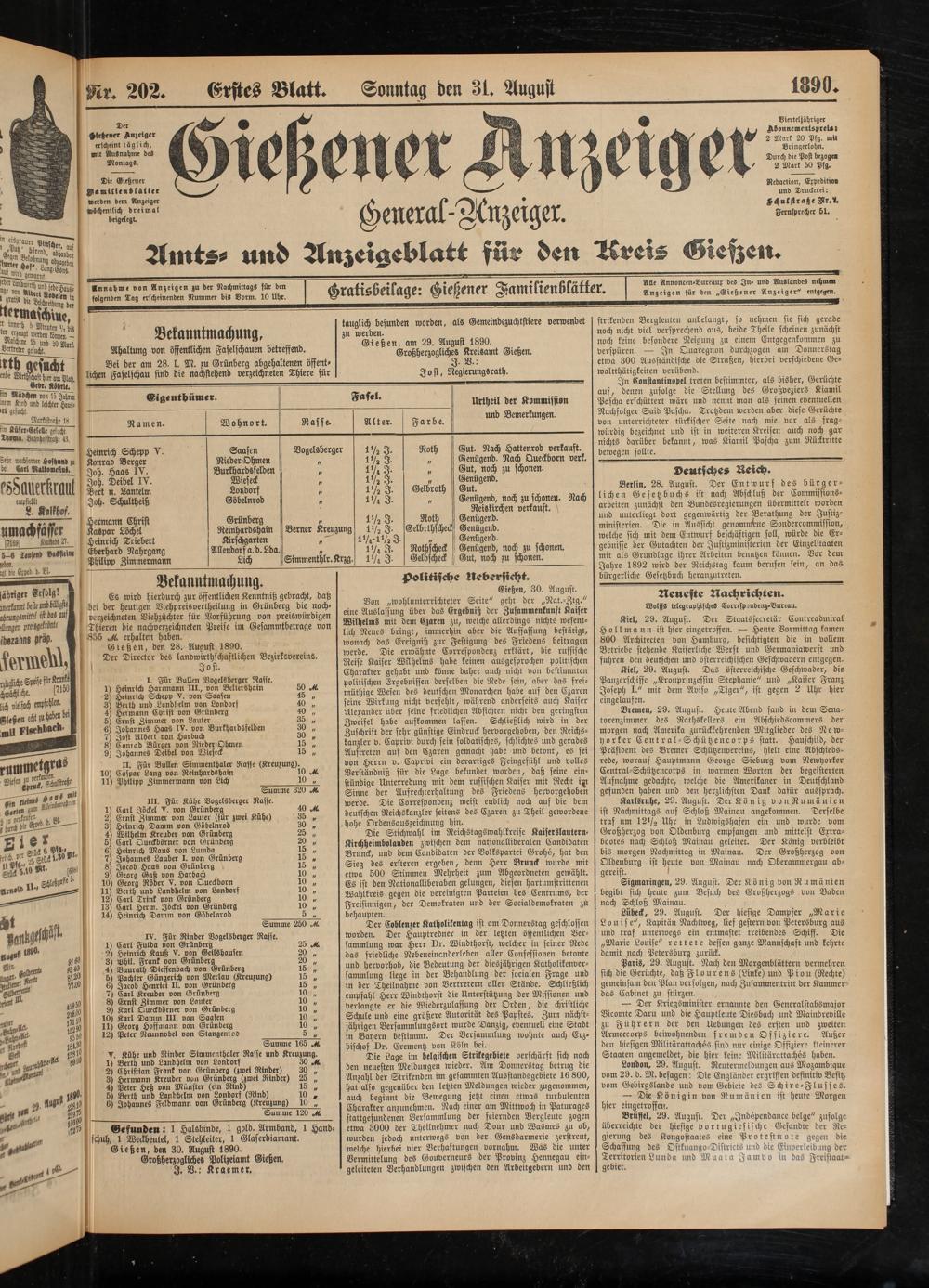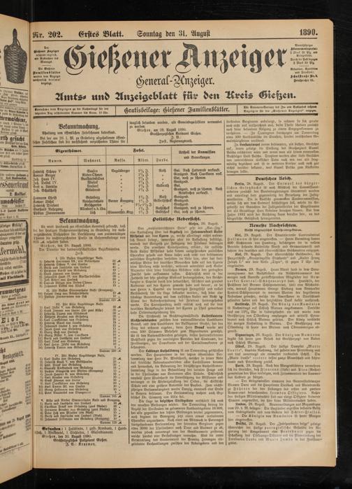 31.8.1890 Erstes Blatt