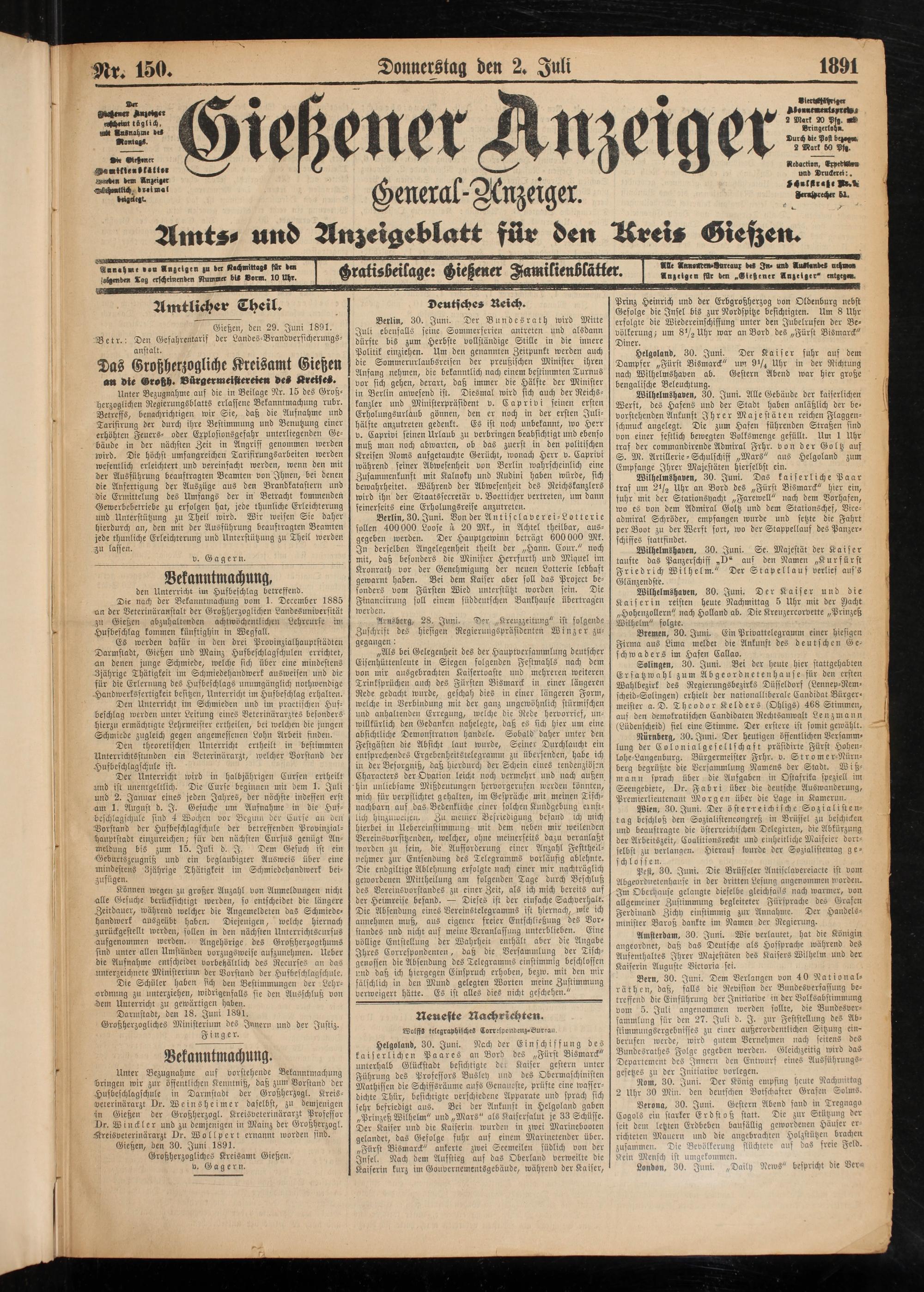 Gießener Anzeiger. 1868-1943