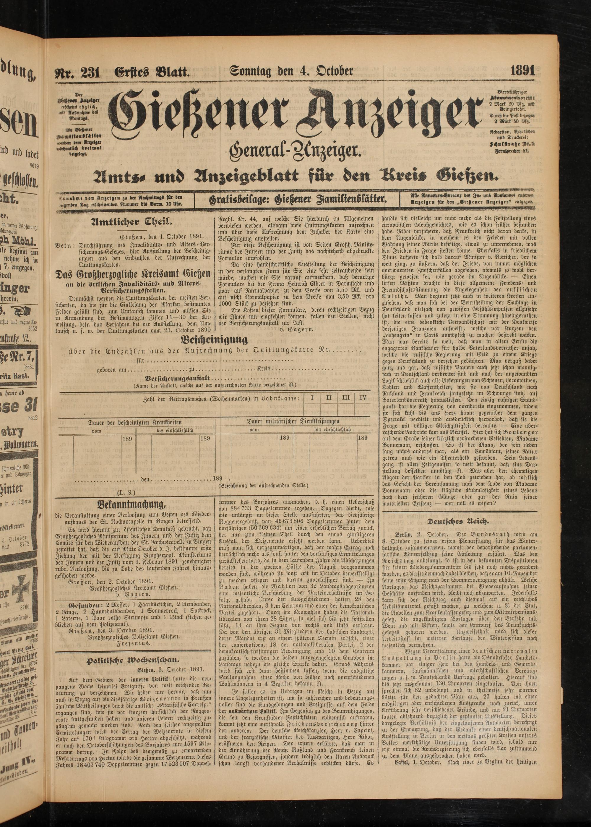 4.10.1891 Erstes Blatt