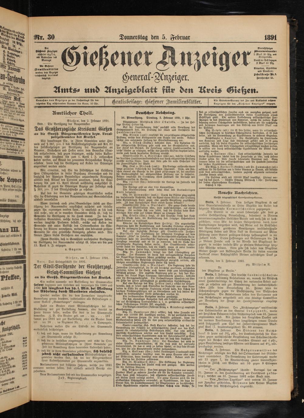 Gießener Anzeiger. 1868-1943